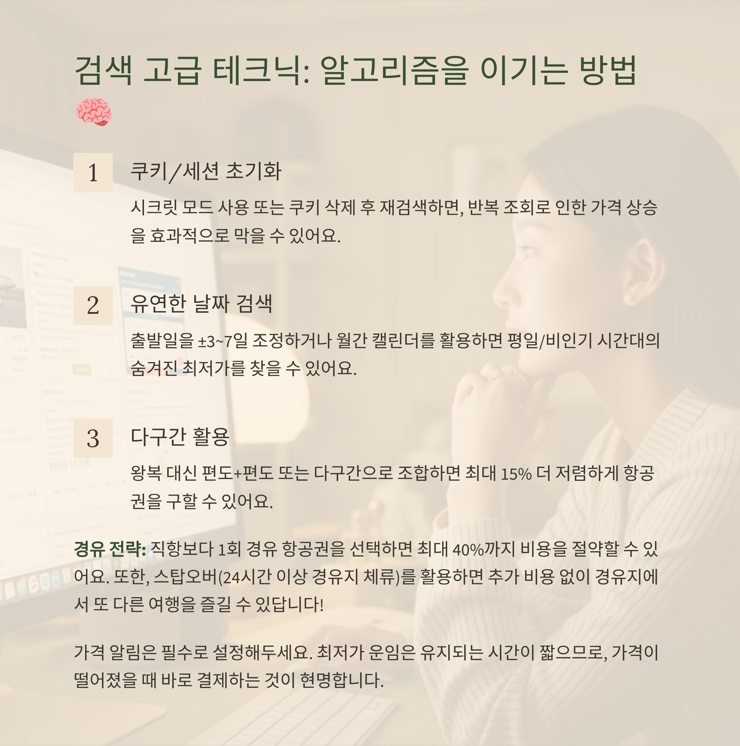 검색 고급팁 10가지: 알고리즘·운임·경유 전략