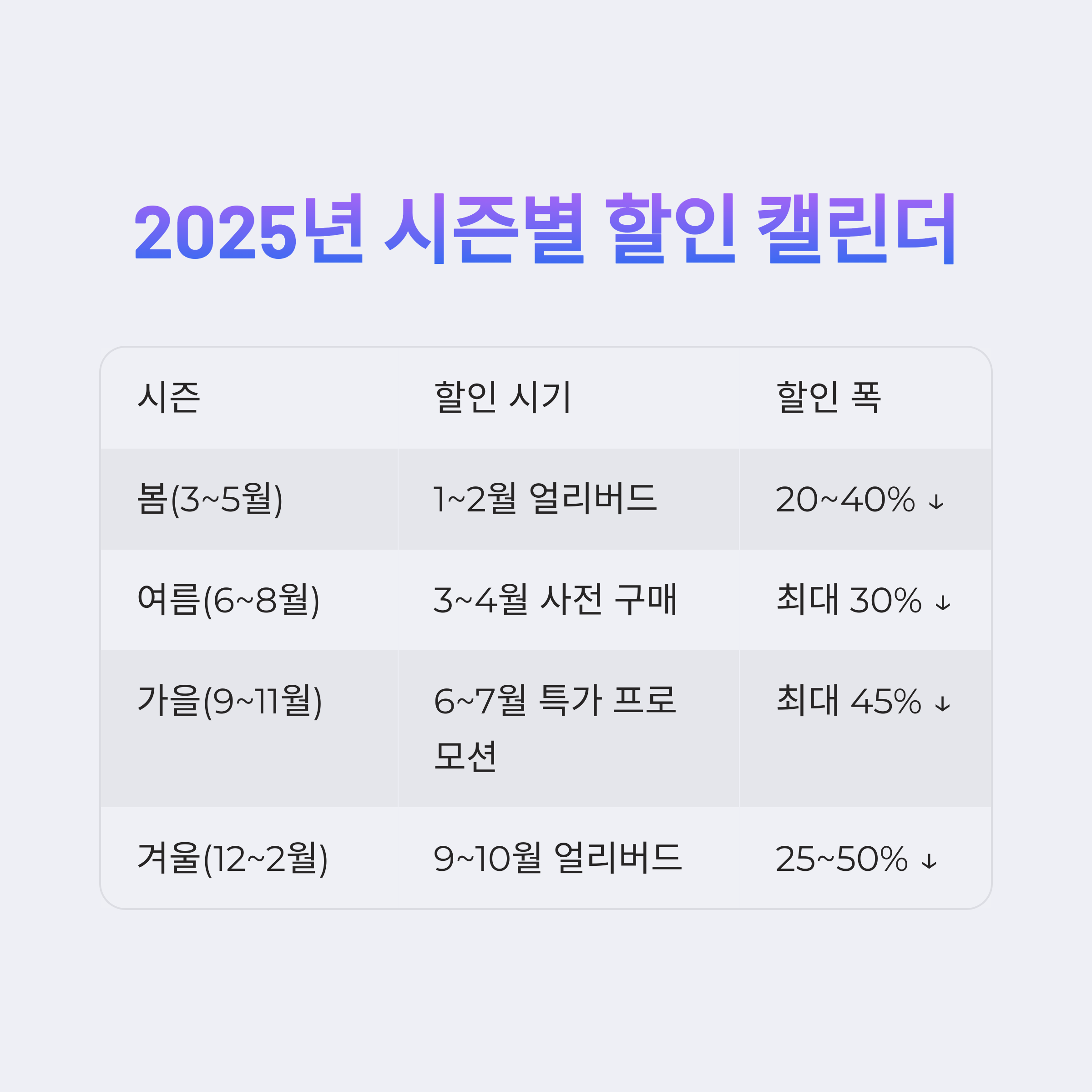 2. 시즌별 항공권 할인 시기 캘린더 (2025년 기준)