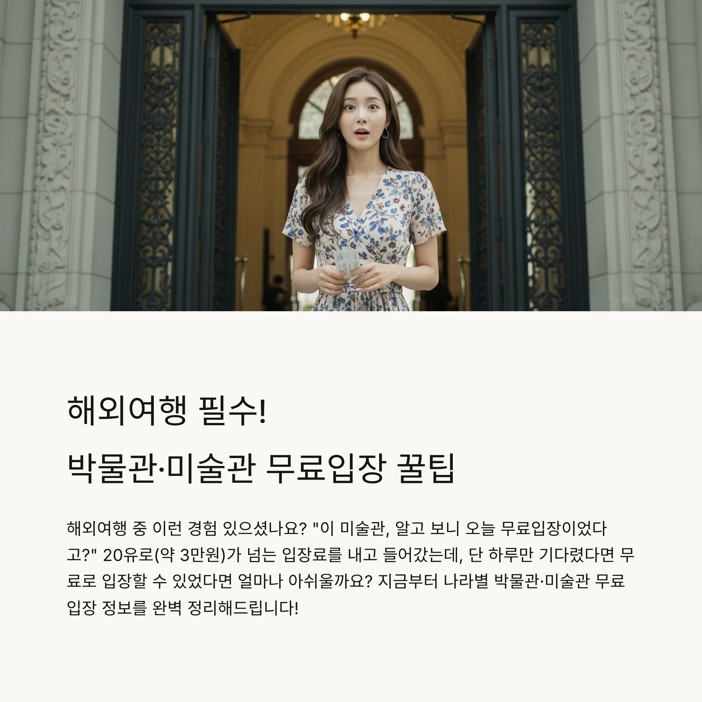 혹시 이런 경험 있으셨나요? "이 미술관, 아까워서 안 갔는데 알고 보니 무료입장 요일이었다고?" 여행 중 이런 아쉬움, 한 번쯤은 있으셨을 겁니다. 오늘 글은 그걸 완전히 막아드리기 위한 정리예요. 무료 입장일, 할인제도, 유용한 패스까지 이 글 하나로 끝내세요!