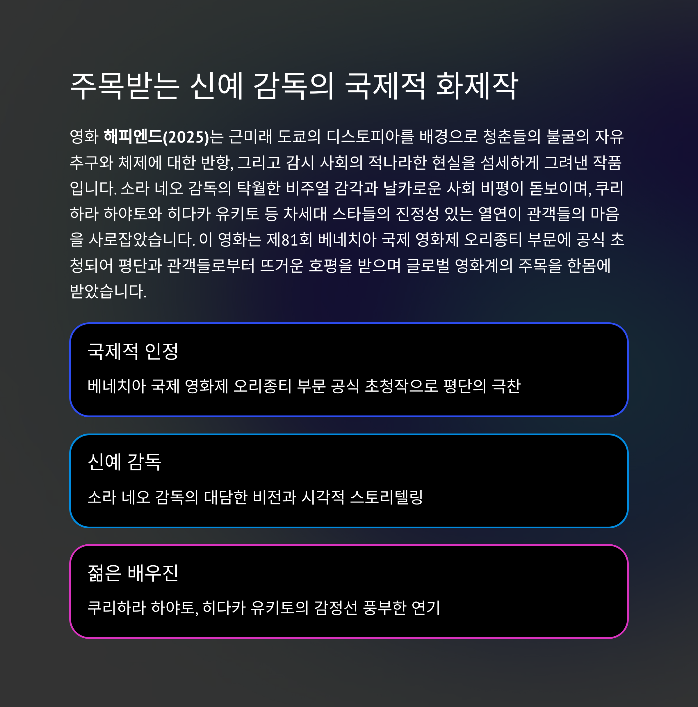 영화 **해피엔드(2025)**는 근미래의 도쿄를 배경으로,