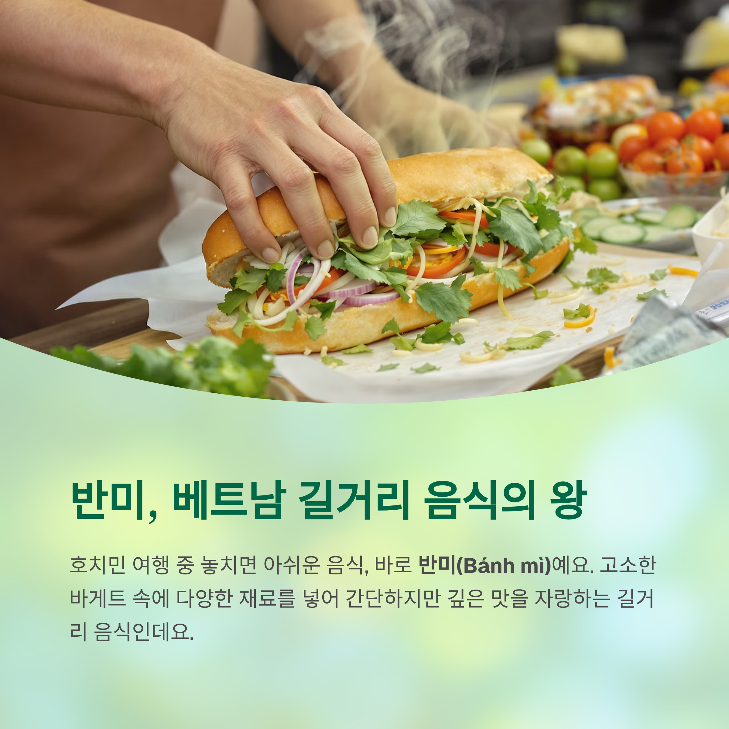 호치민 여행 중 놓치면 아쉬운 음식, 바로 **반미(Bánh mì)**예요.