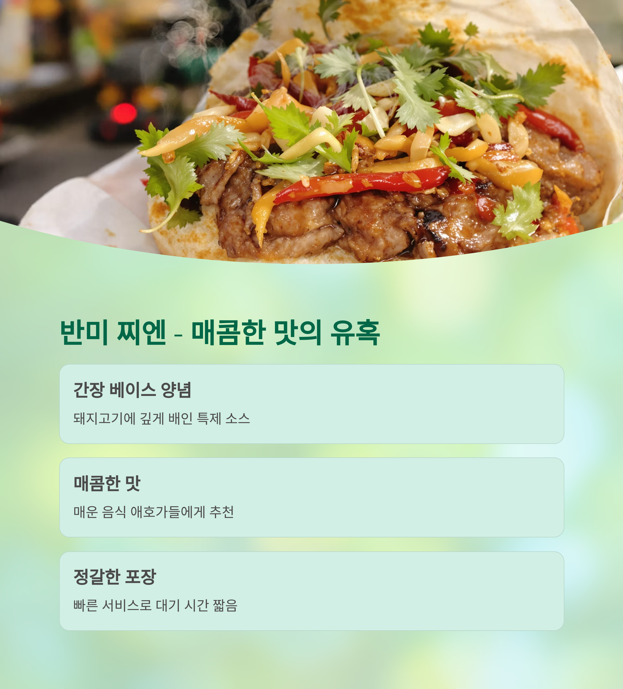 | 3위 | 반미 홍화 | 닭고기 반미 | 담백한 맛, 여성 인기 |