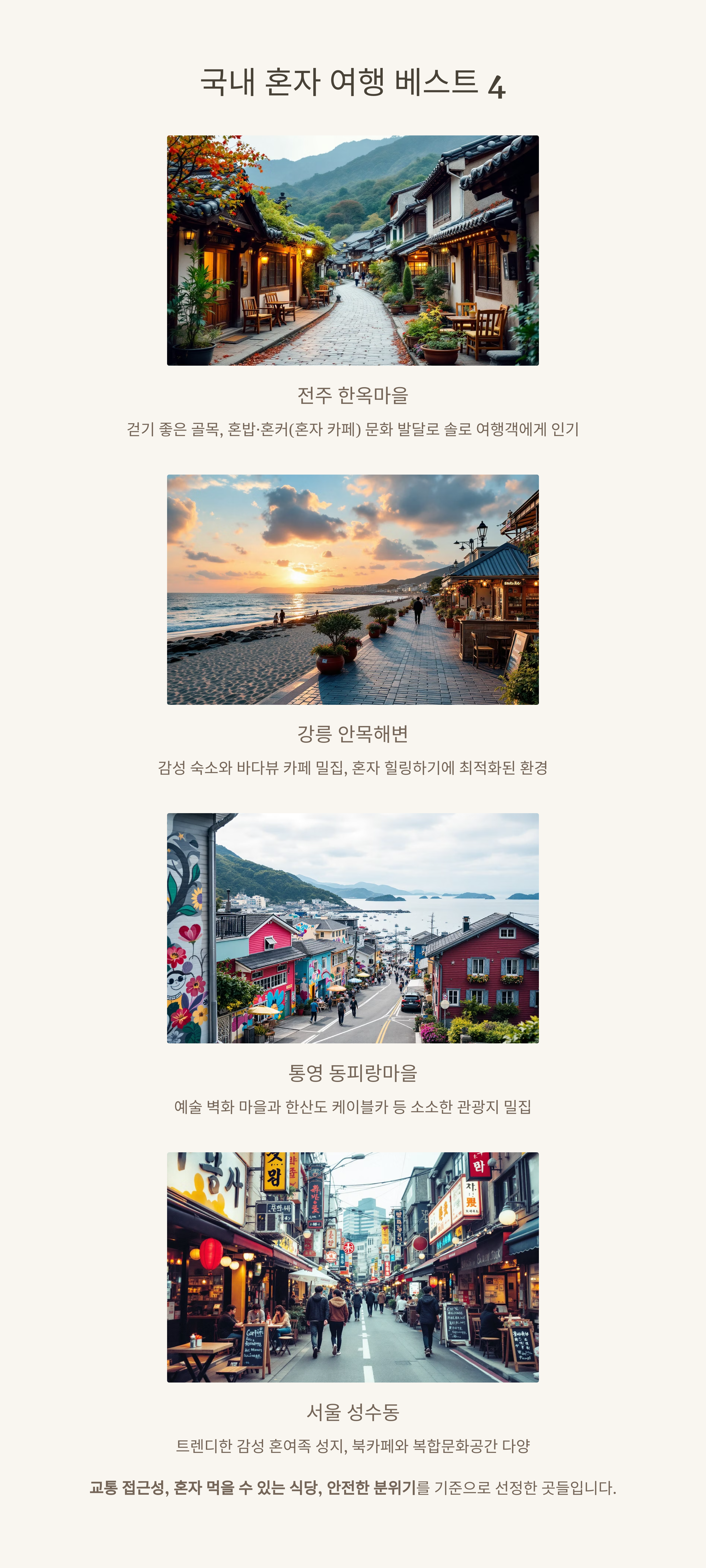 국내 혼자 여행 추천지 TOP 4