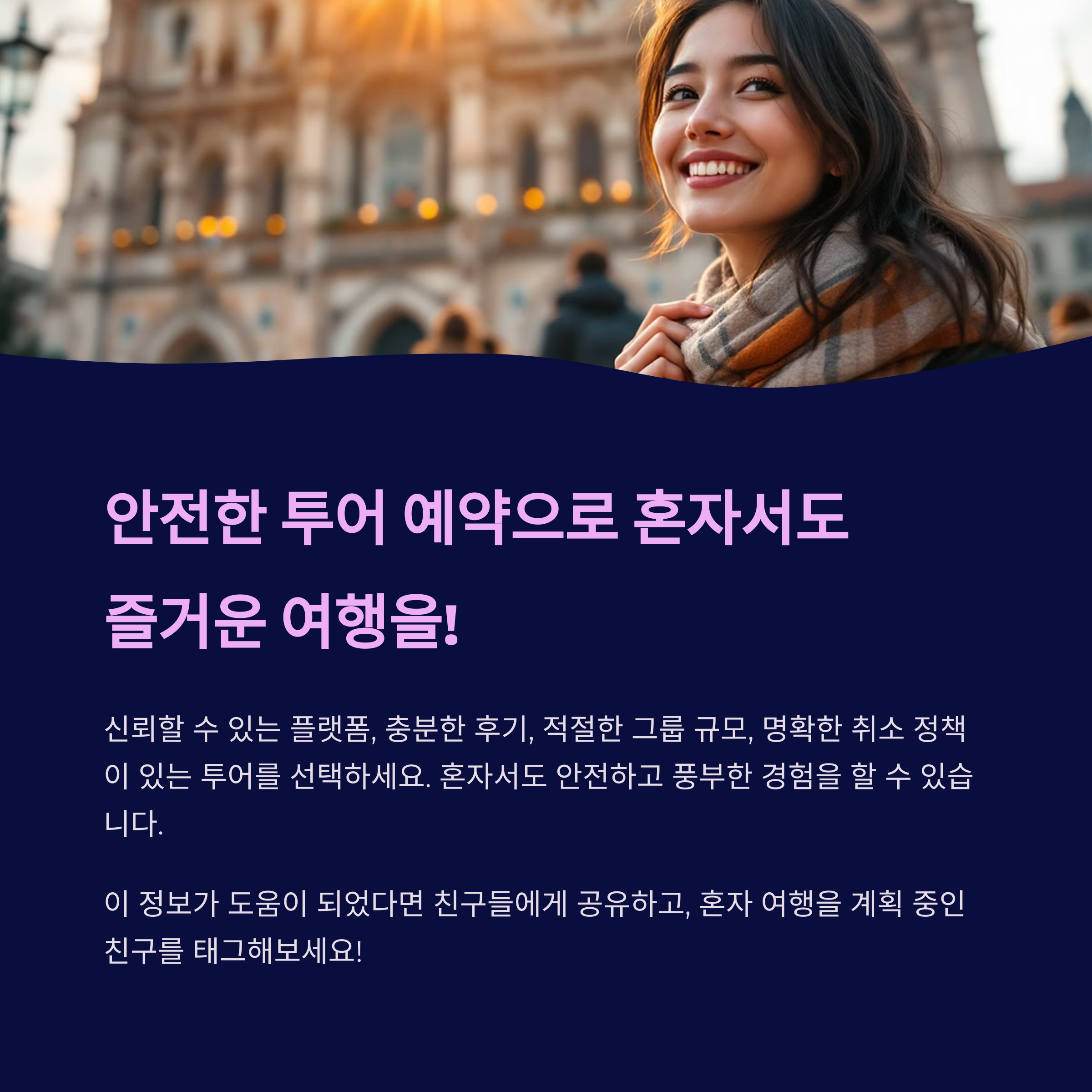 혼자 참여 시 추천되는 안전한 투어 유형은 다음과 같습니다: