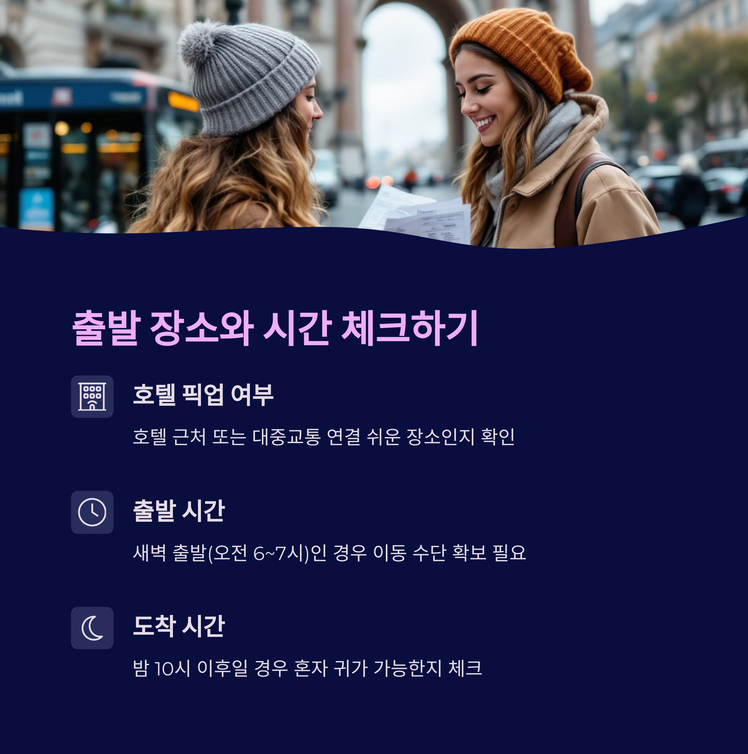 - 혼자 참여 가능한가?: 일부 투어는 2인 이상만 예약 가능하니 사전 체크 필요