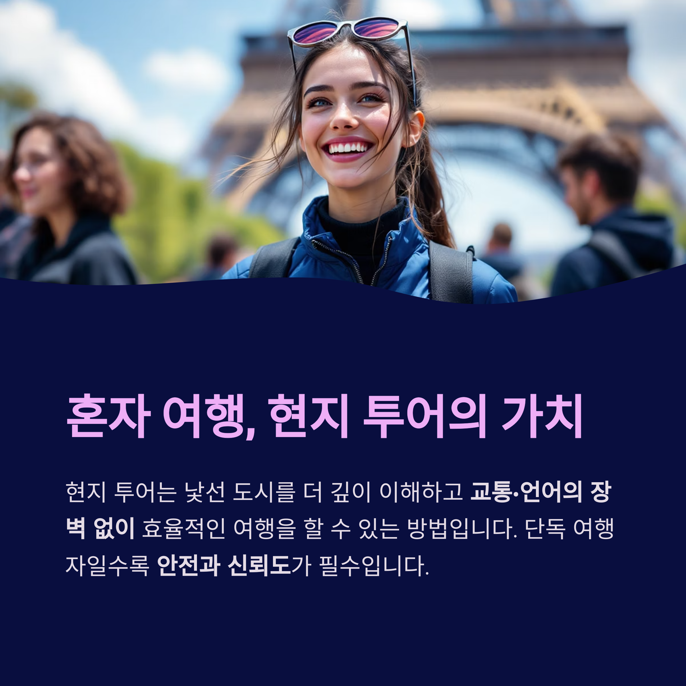 현지 투어는 낯선 도시를 더 깊이 이해하고 교통·언어의 장벽 없이 효율적인 여행을 할 수 있는 방법입니다.