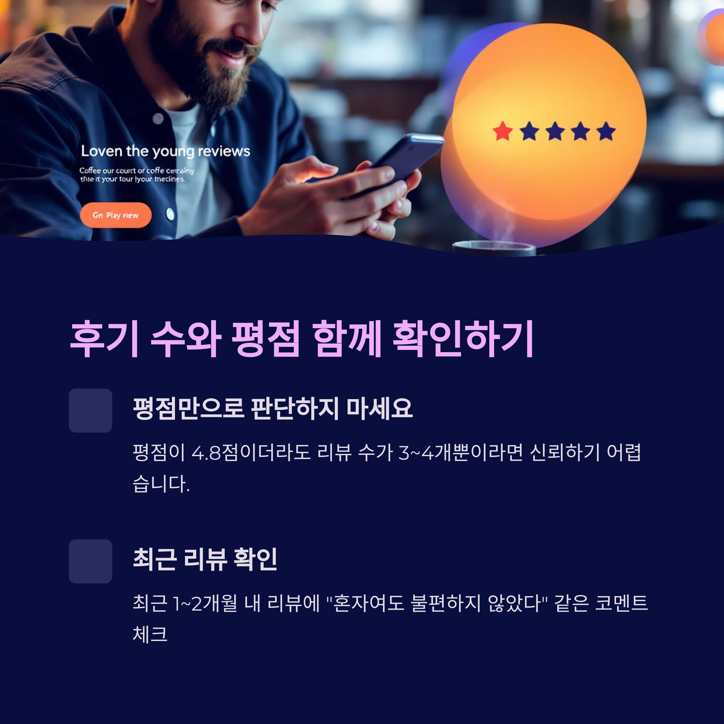 평점이 4.8점이더라도 리뷰 수가 3~4개뿐이라면 신뢰하기 어렵습니다.
