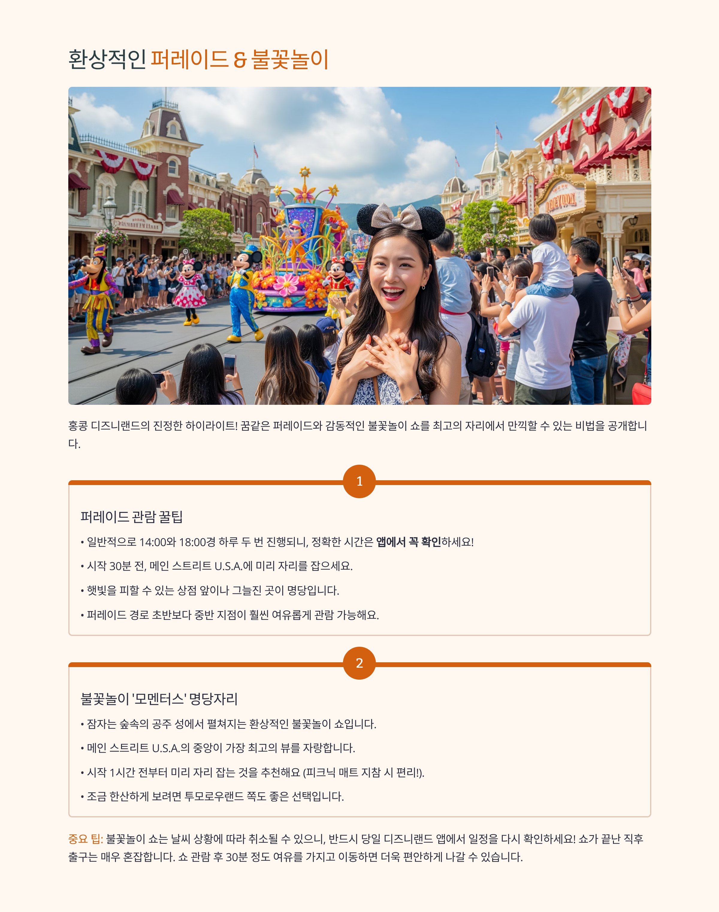 ✨ 퍼레이드 & 불꽃놀이 관람 꿀팁