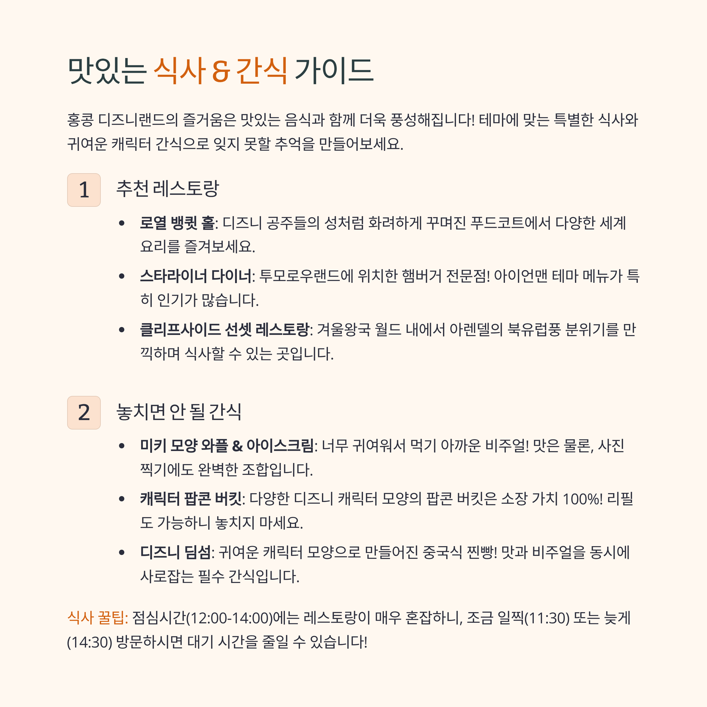 5. 홍콩 디즈니랜드 식사 & 레스토랑 정보