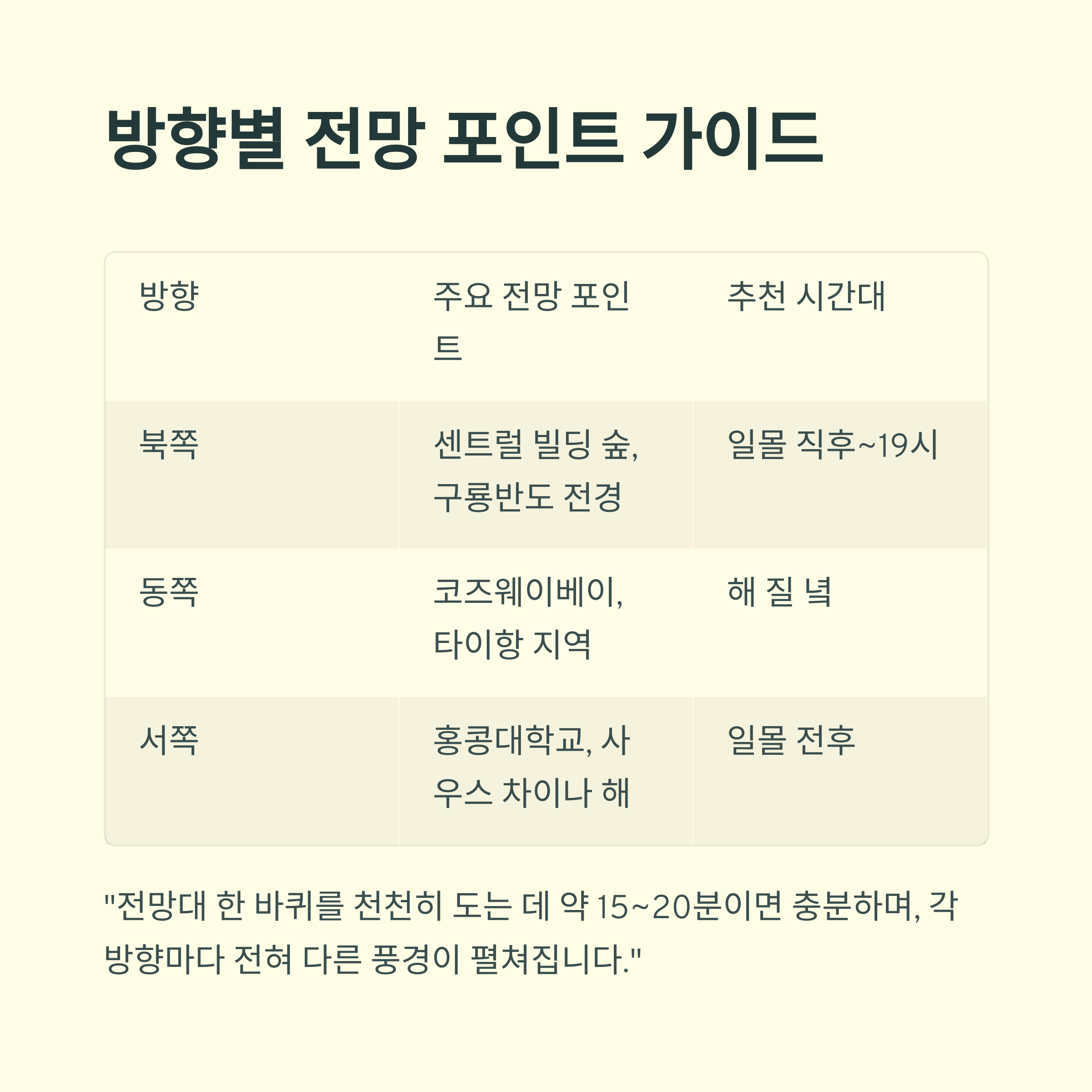북쪽 | 센트럴 빌딩 숲, 구룡반도 전경 | 일몰 직후~19시 |
