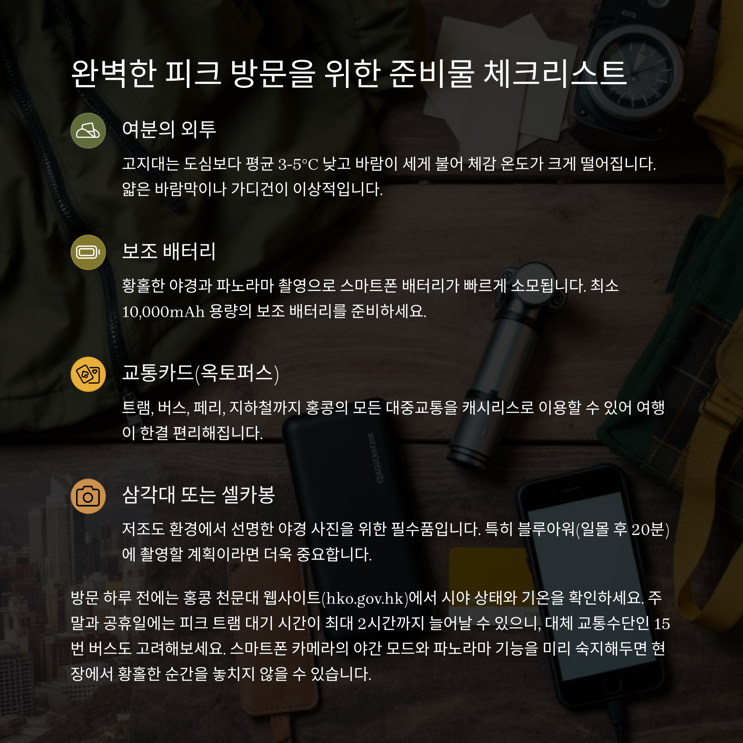 | 왕복 요금 | 약 88 HKD (전망대 포함 시) |