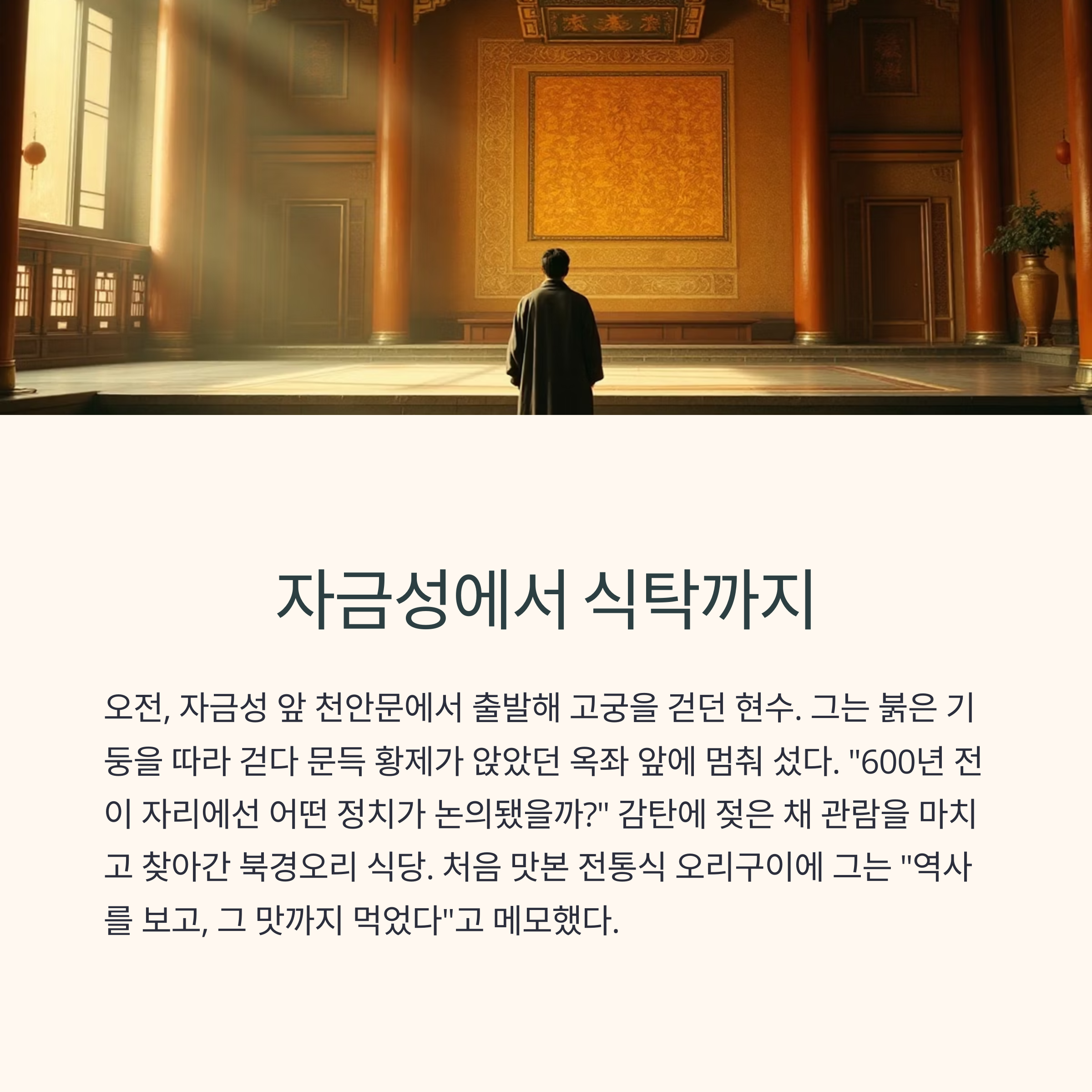 자금성의 장엄함과 중국 전통 음식의 깊은 맛, 함께 즐길 수 있을까?