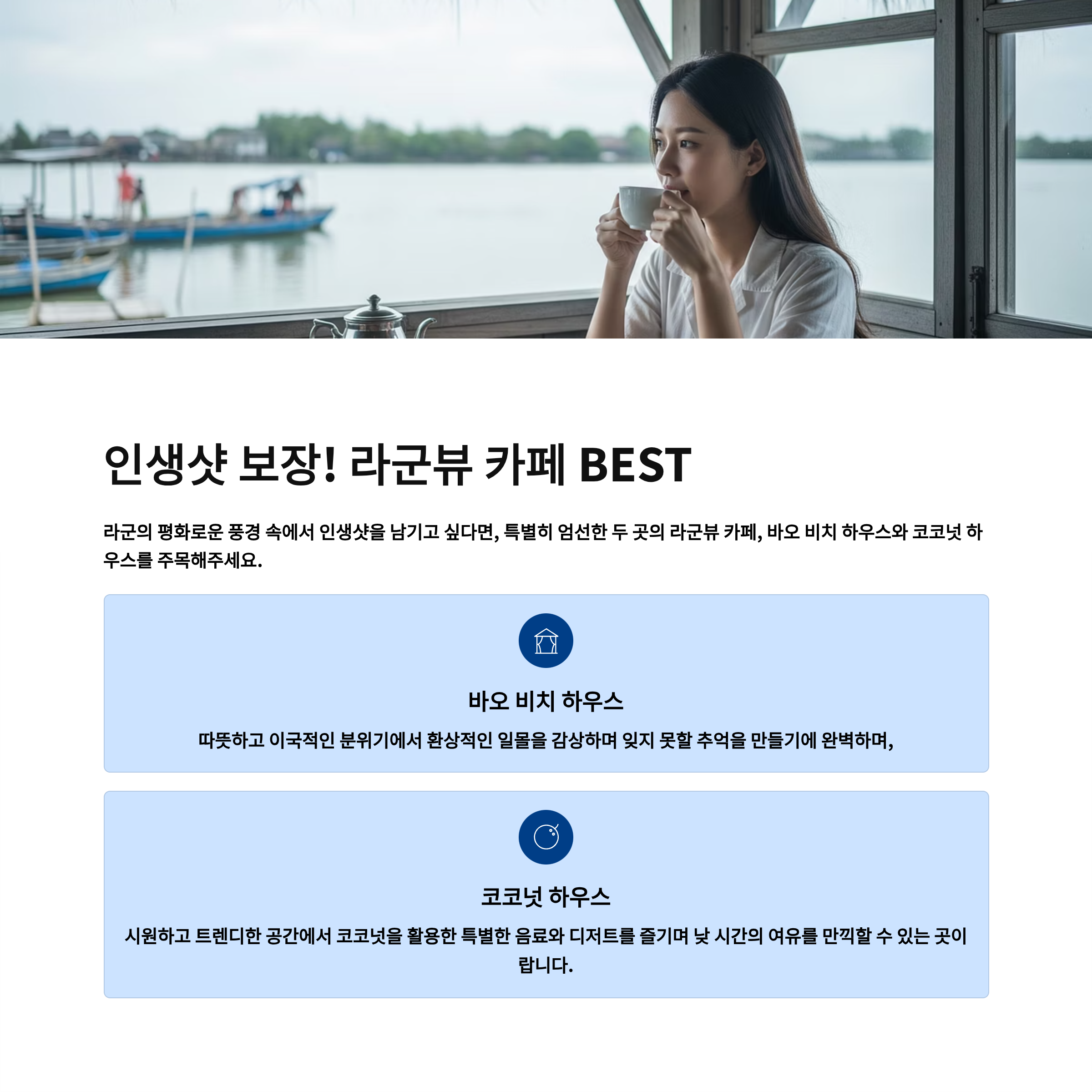 복잡한 시내를 벗어나, 라군의 평화로운 풍경 속에서 즐기는 커피 한 잔의 여유. 제가 직접 엄선한 최고의 라군뷰 카페 두 곳을 소개해 드릴게요. 두 곳 모두 매력적이니 취향에 따라 선택해보세요.