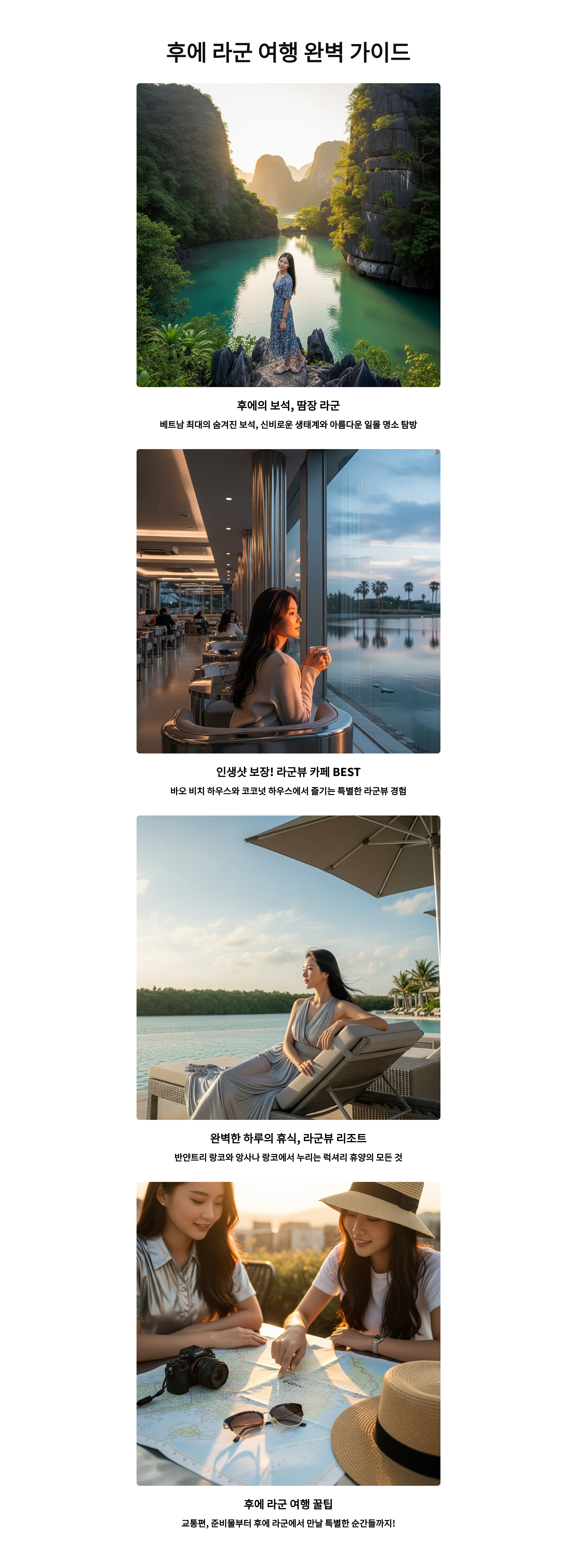 하지만 막상 찾아보면 정보가 너무 부족해서 어디가 좋은지 알기 어렵죠. 그래서 준비했습니다! 최고의 인생샷을 남길 수 있는 라군뷰 카페부터, 완벽한 휴식을 선사할 리조트까지. 이 글 하나로, 아무도 몰랐던 후에의 진짜 매력을 만나보세요!