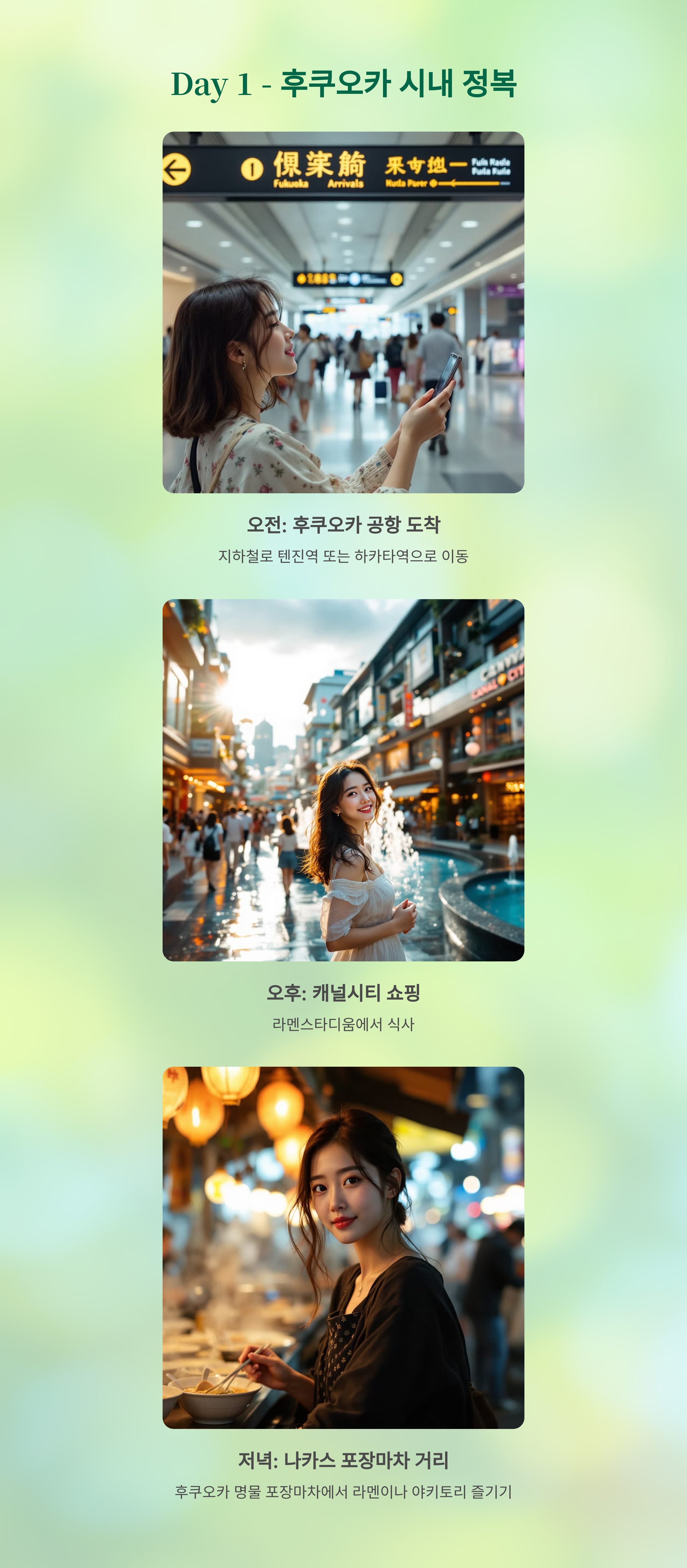 | 오전 | 후쿠오카 공항 도착 → 지하철 이동 | 텐진역 or 하카타역 |