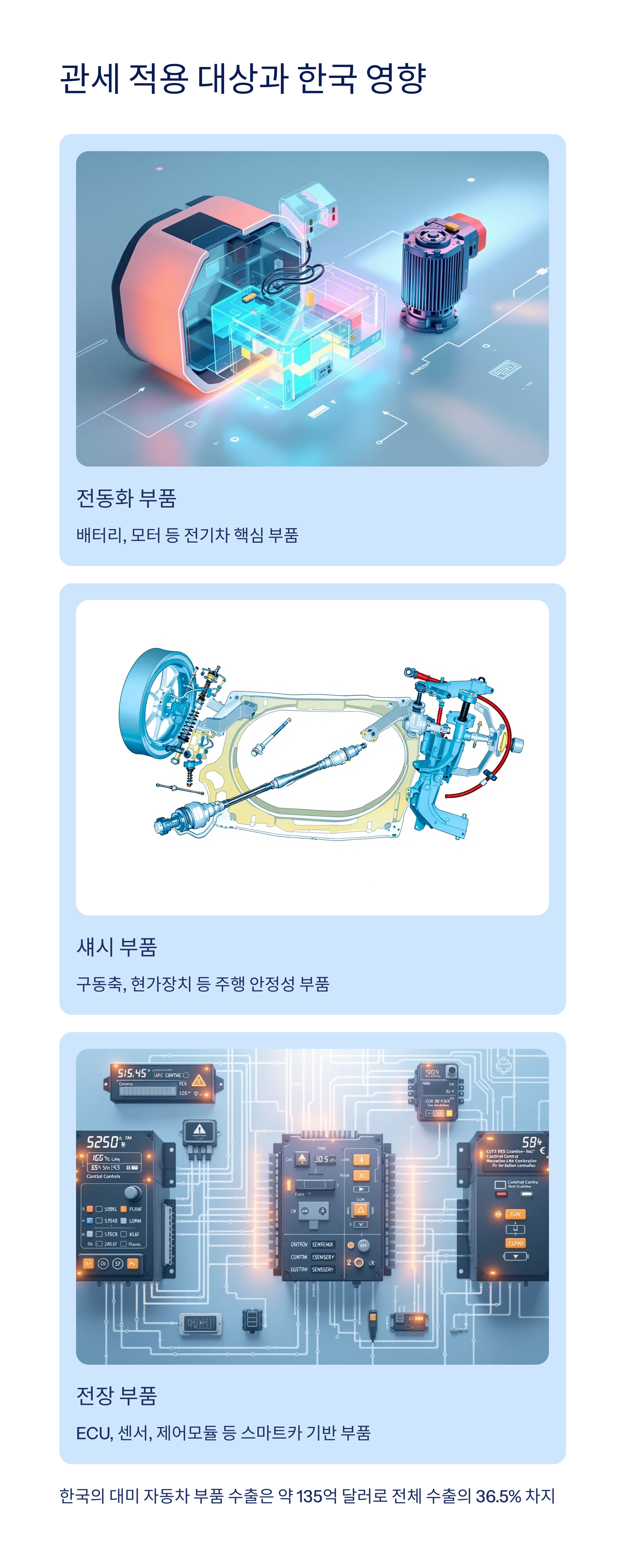 한국의 대미 자동차 부품 수출은 2024년 기준 약 135억 달러(약 19조 원) 규모로,