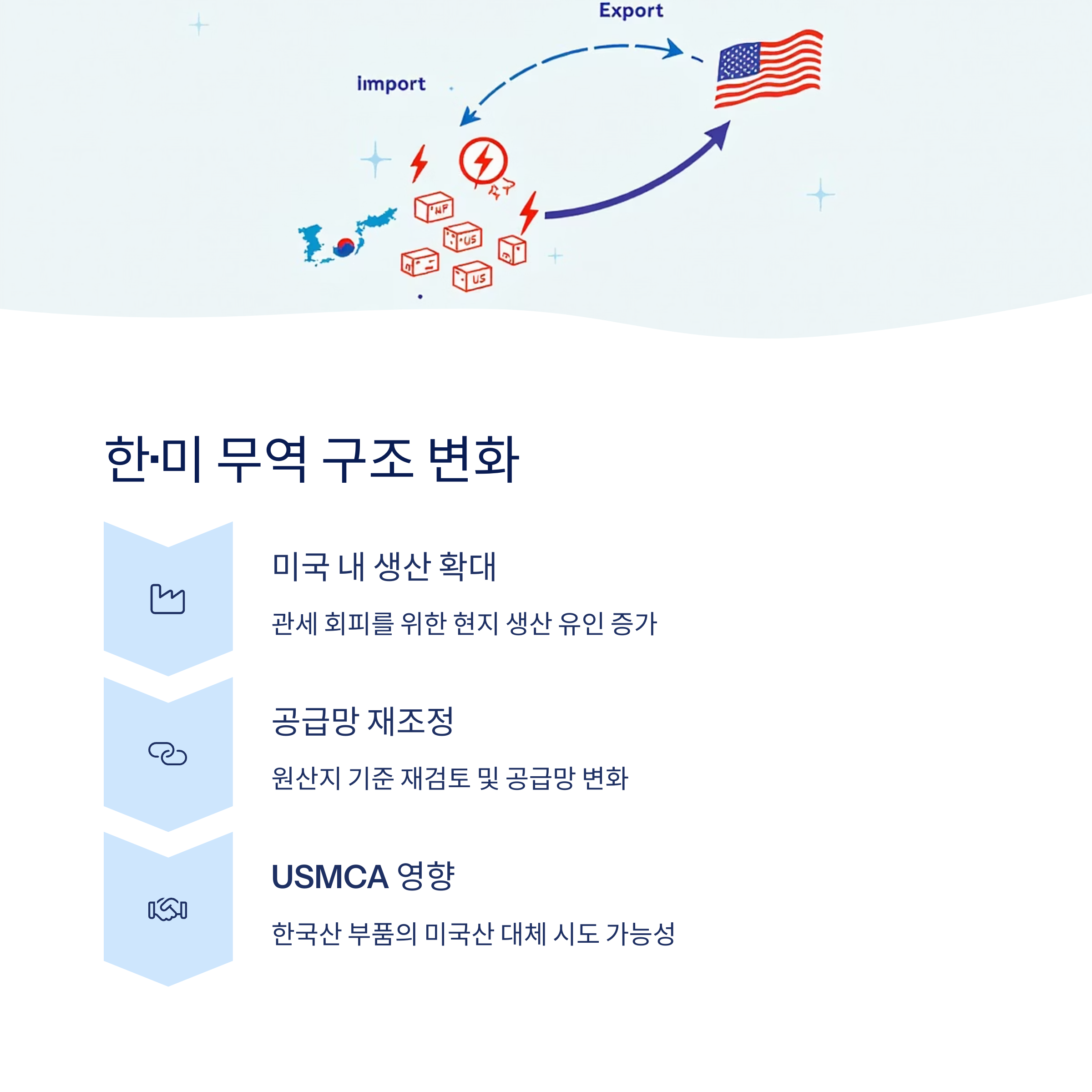 하지만 단기적으로는 고용 불안, 공급망 재조정, 원산지 기준 검토 등