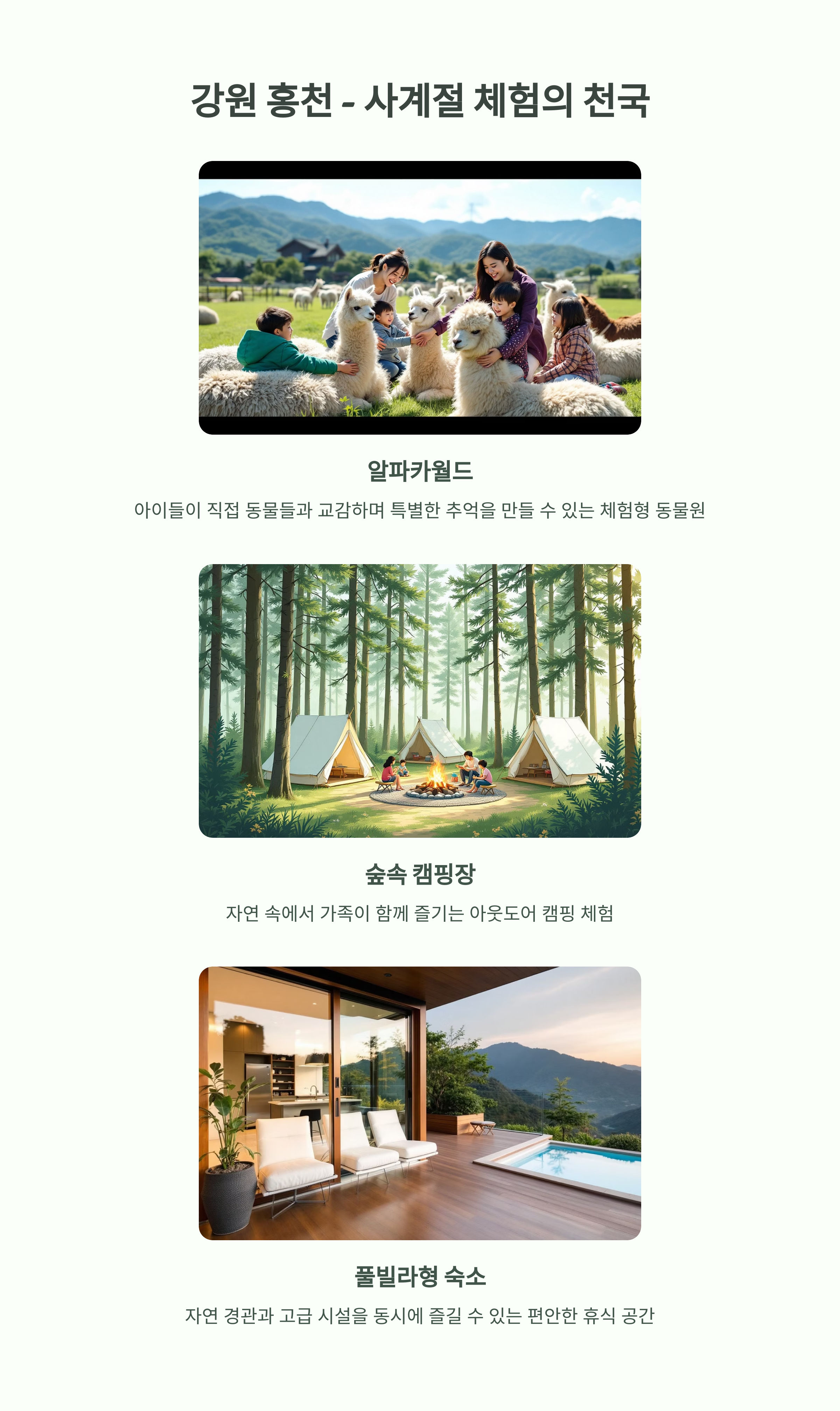 이번 추천 리스트는 체험 활동, 자연 경관, 숙소 편의성까지 고려해
