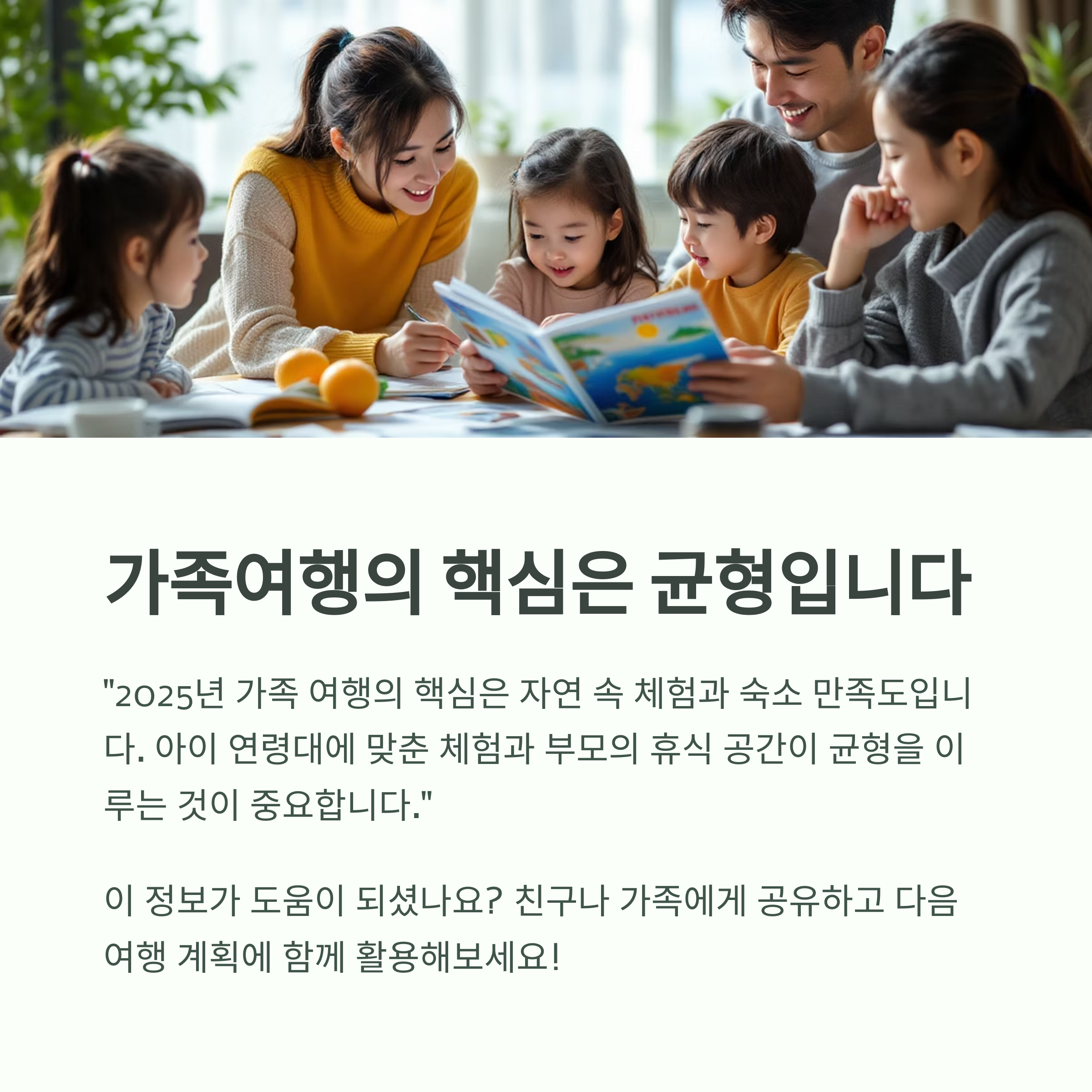 "2025년 가족 여행의 핵심은 자연 속 체험과 숙소 만족도입니다"