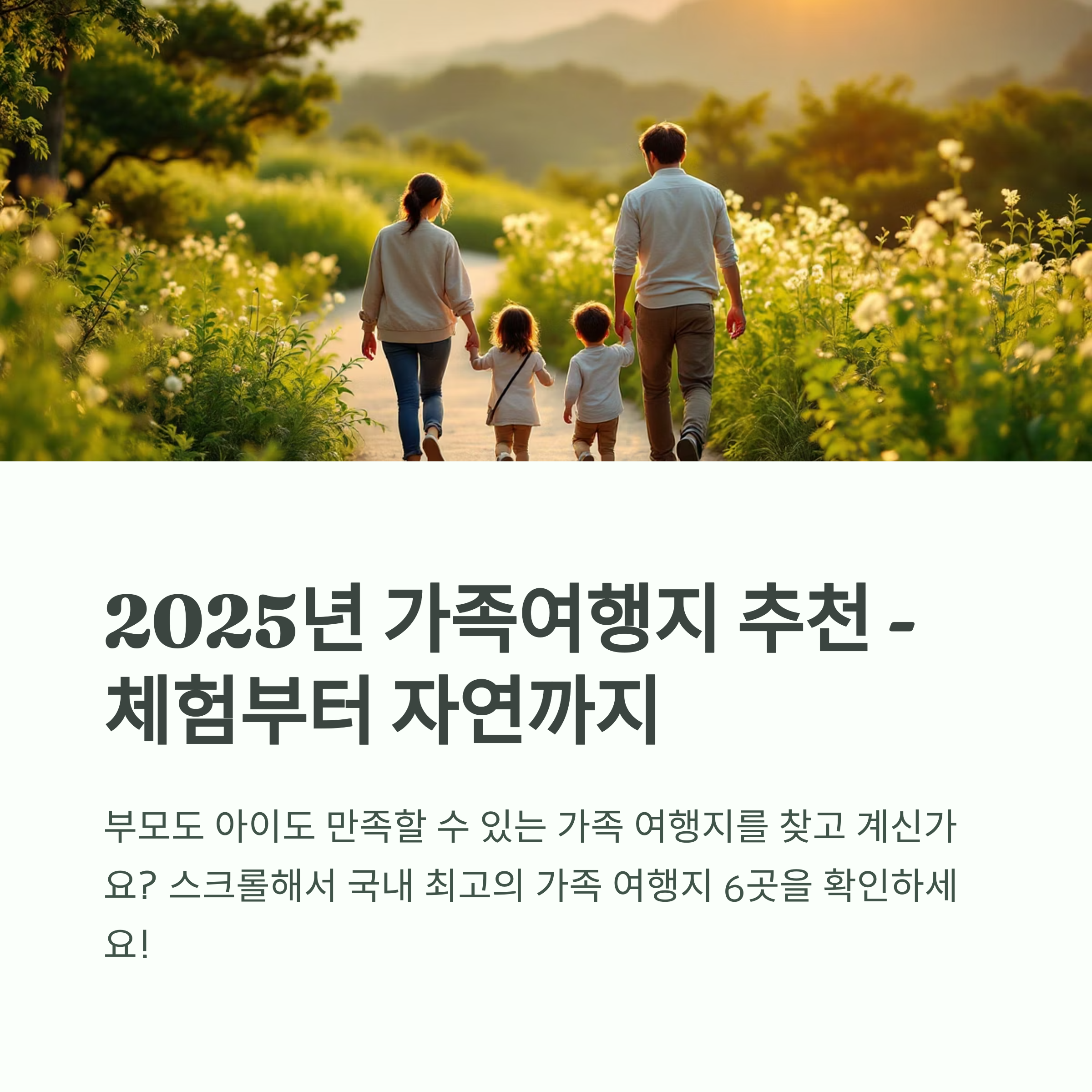 온 가족이 모두 만족할 수 있는 국내 가족 여행지 6곳을 소개합니다.