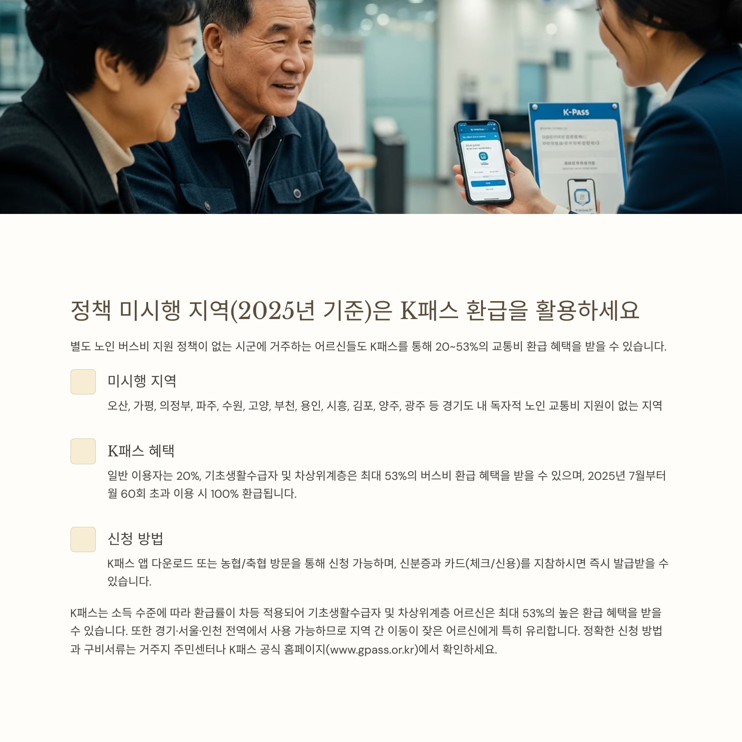 1. 경기도 시군별 2025 노인버스비 지원 정책: 어디서, 어떻게 신청할 수 있나요?