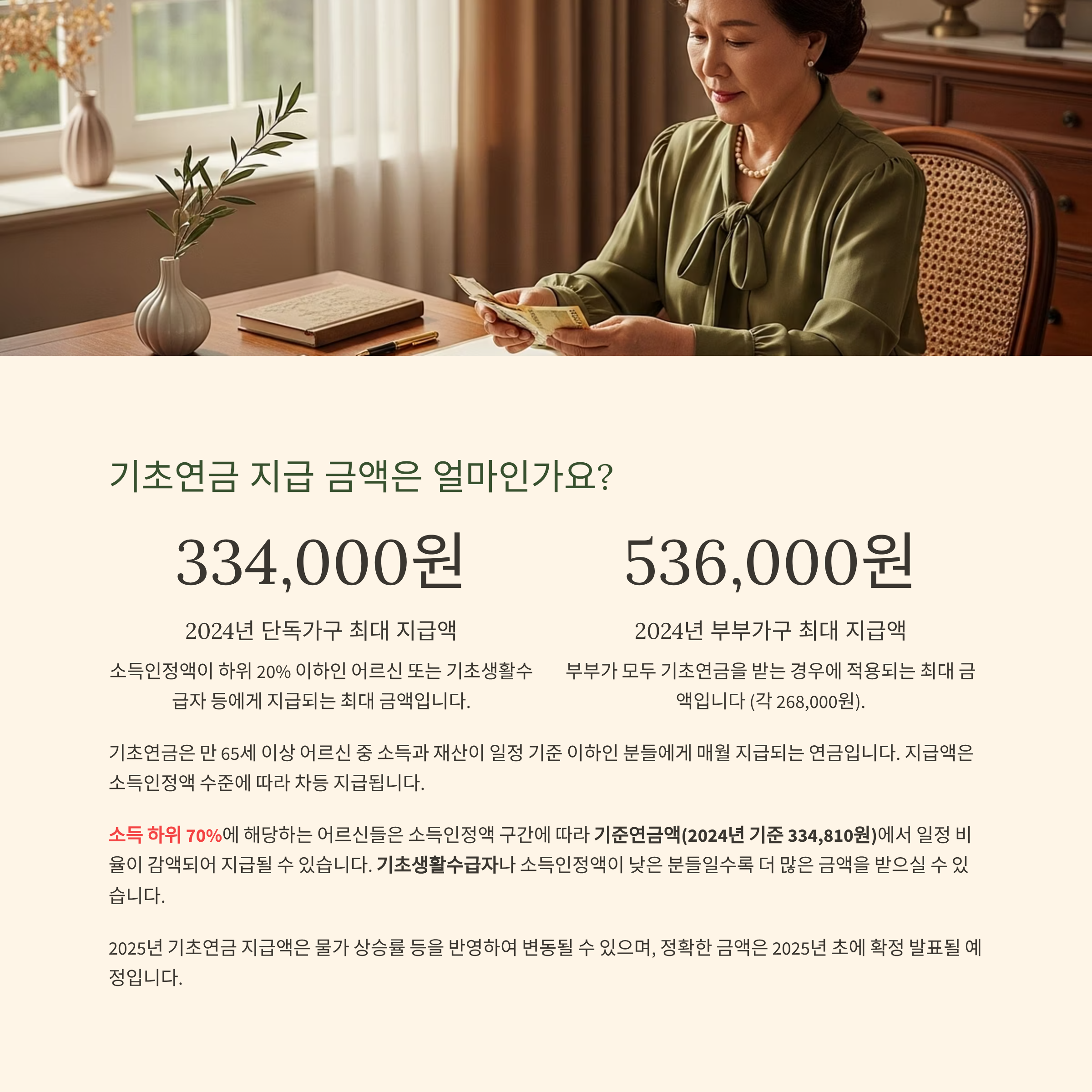 그래서 이번엔 **2025년 바뀌는 기초연금 수급 기준**을 한눈에 쉽게 정리해 드릴게요.
