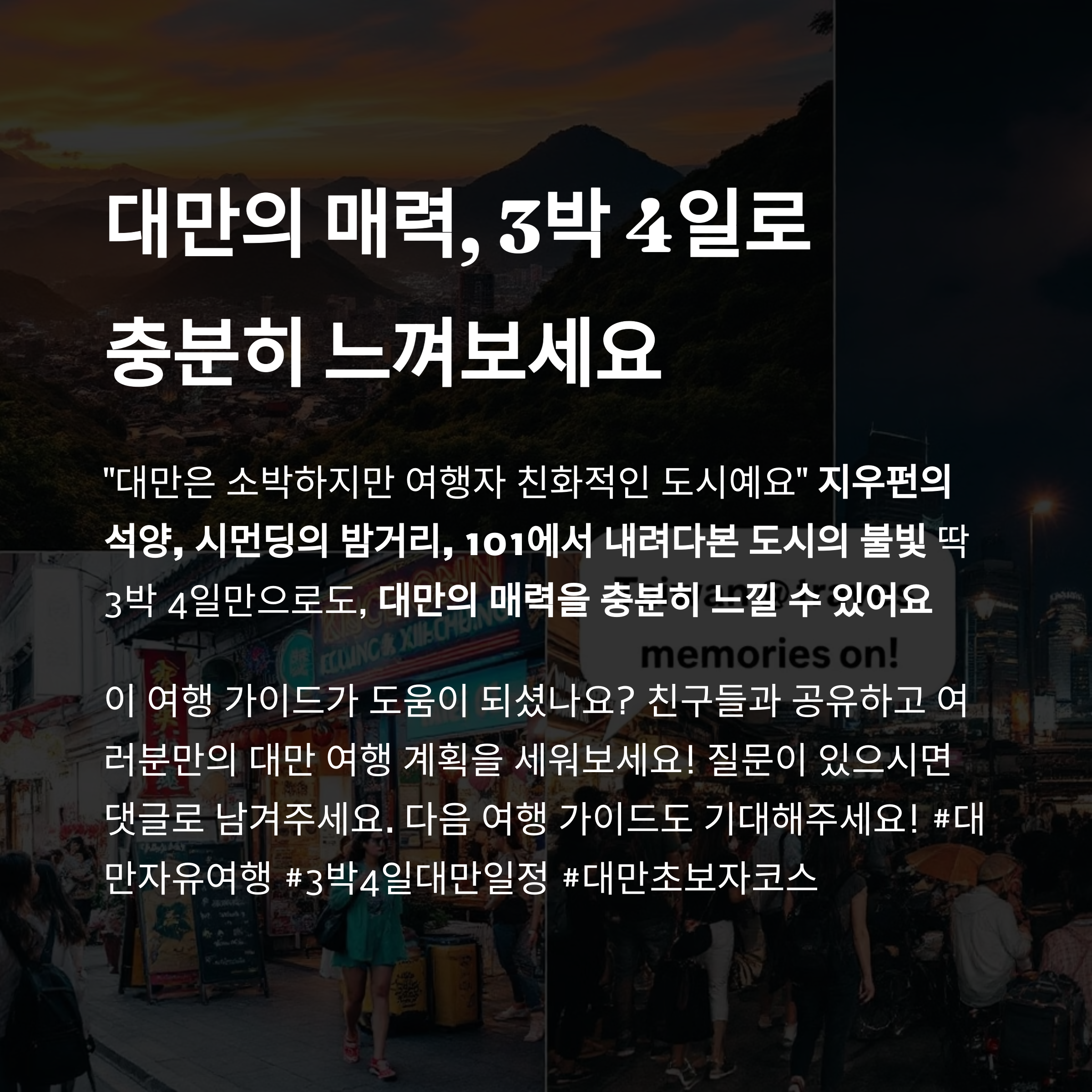 딱 3박 4일만으로도, 대만의 매력을 충분히 느낄 수 있어요