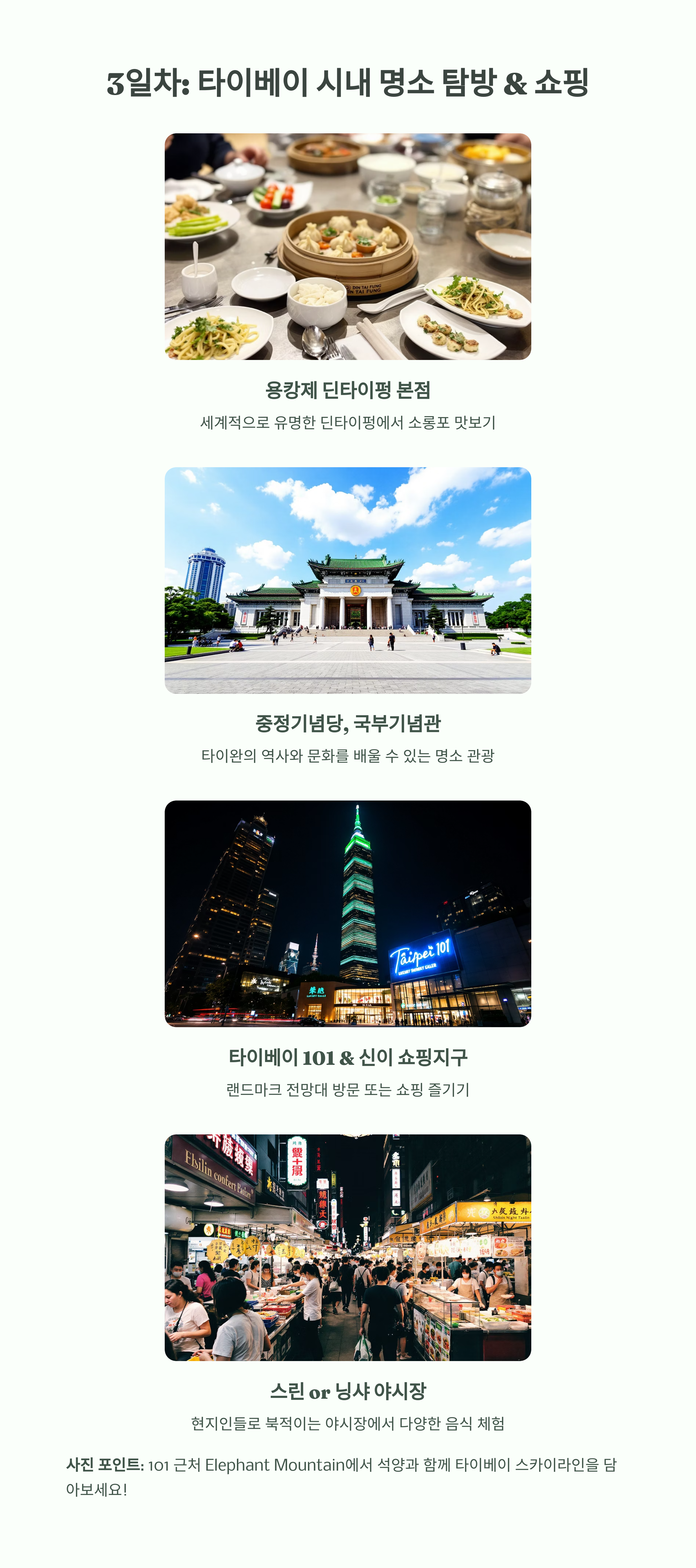 - 오후: 타이베이 101 전망대 or 신이 쇼핑지구 탐방