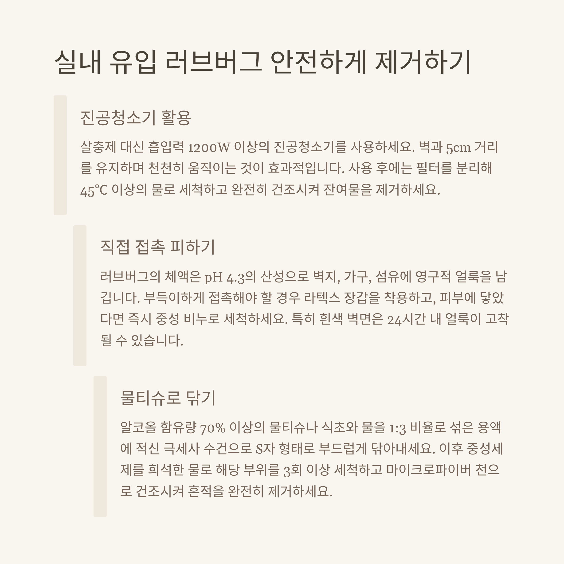 가정에서는 진공청소기, 젖은 수건 사용을 권장하며