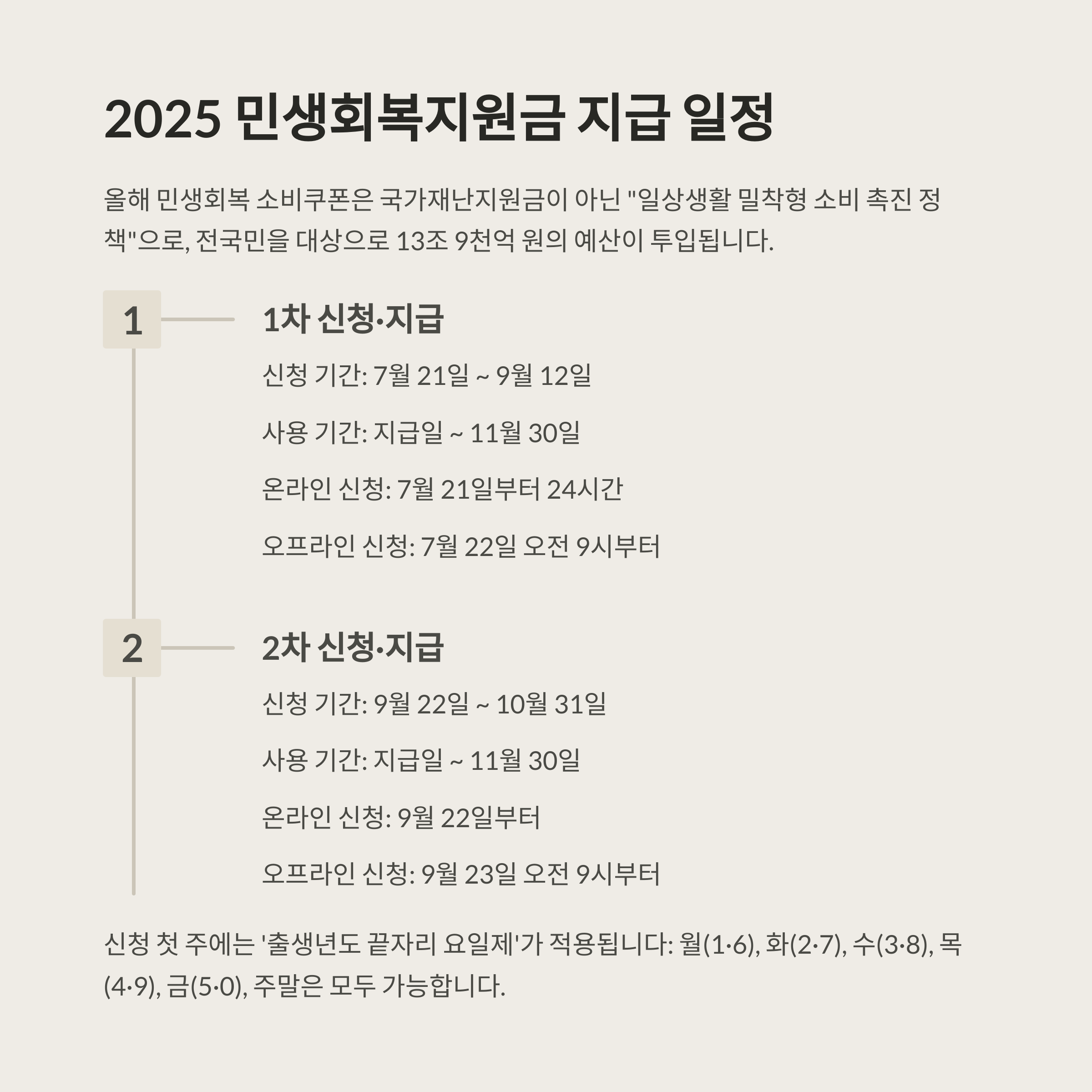 1. 2025 민생회복 소비쿠폰 지원금 지급일 및 신청 일정