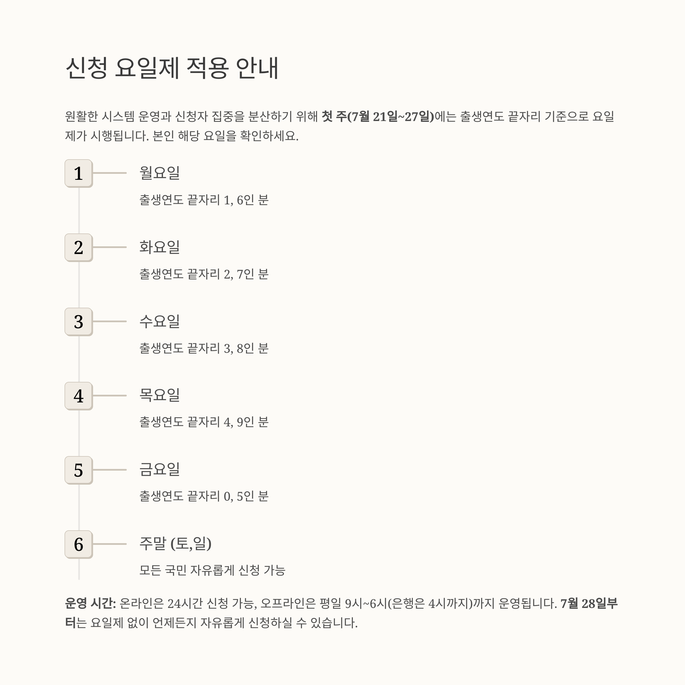 5. 신청 요일제 적용: 첫 주는 출생연도 끝자리별로