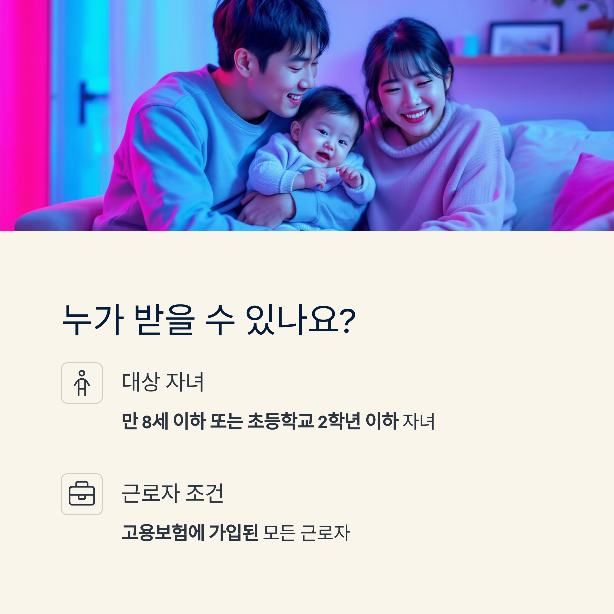 이 기간 동안 **정부로부터 지급받는 ‘육아휴직 급여’**는 부모에게 큰 도움이 됩니다.