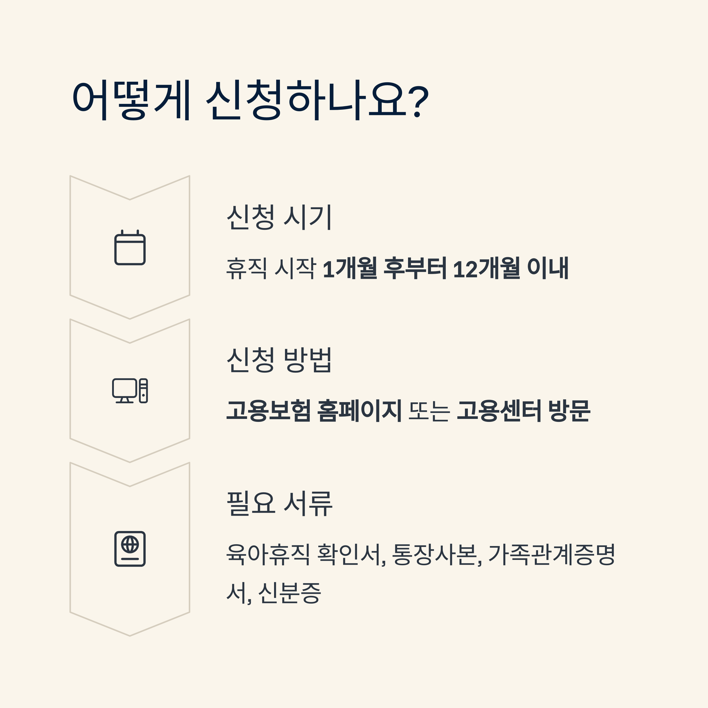 | 1단계 | 사업주에게 육아휴직 신청 및 승인 |