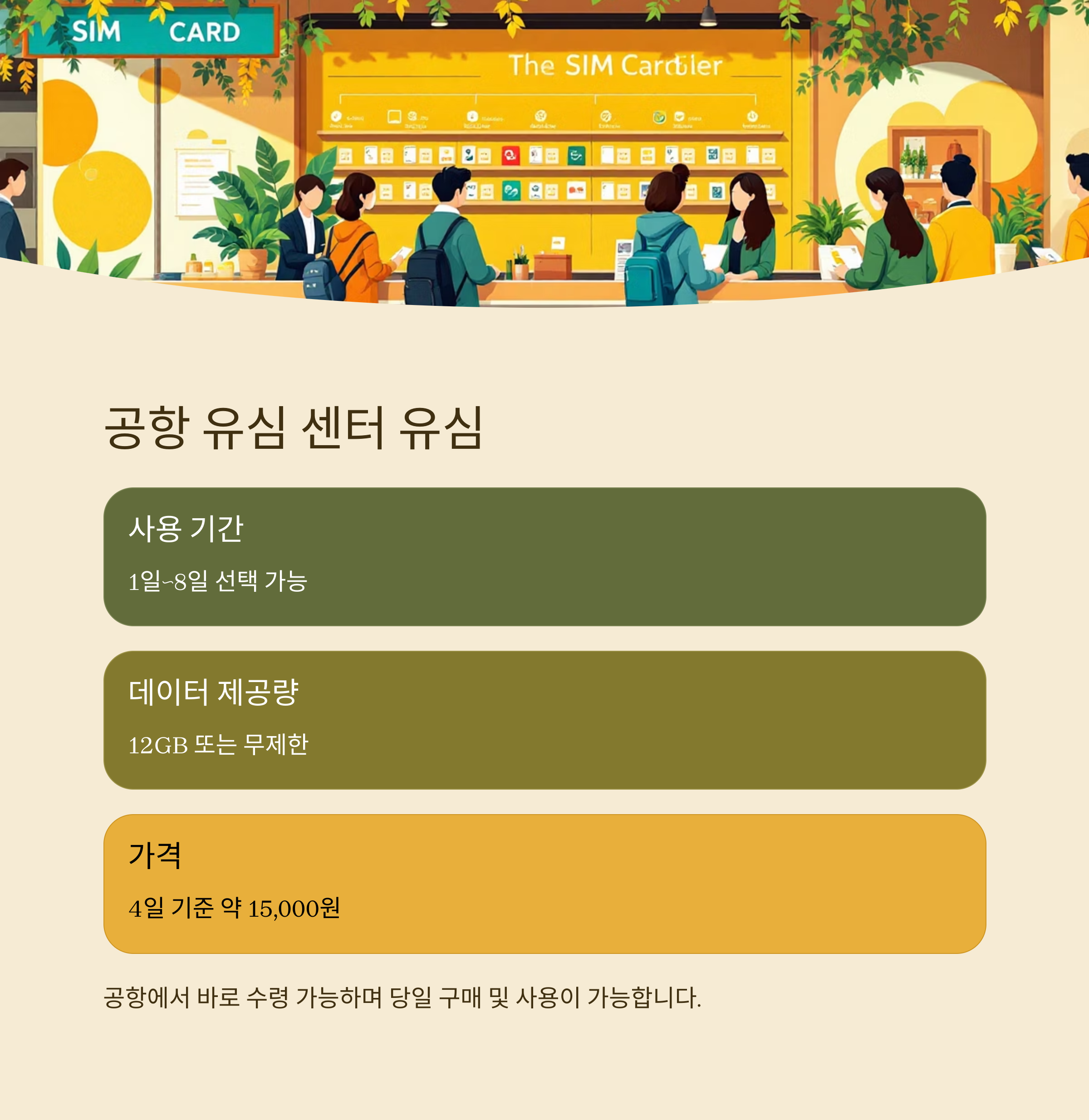 | 특징 | 공항 수령 가능, 당일 구매 및 사용 가능 |