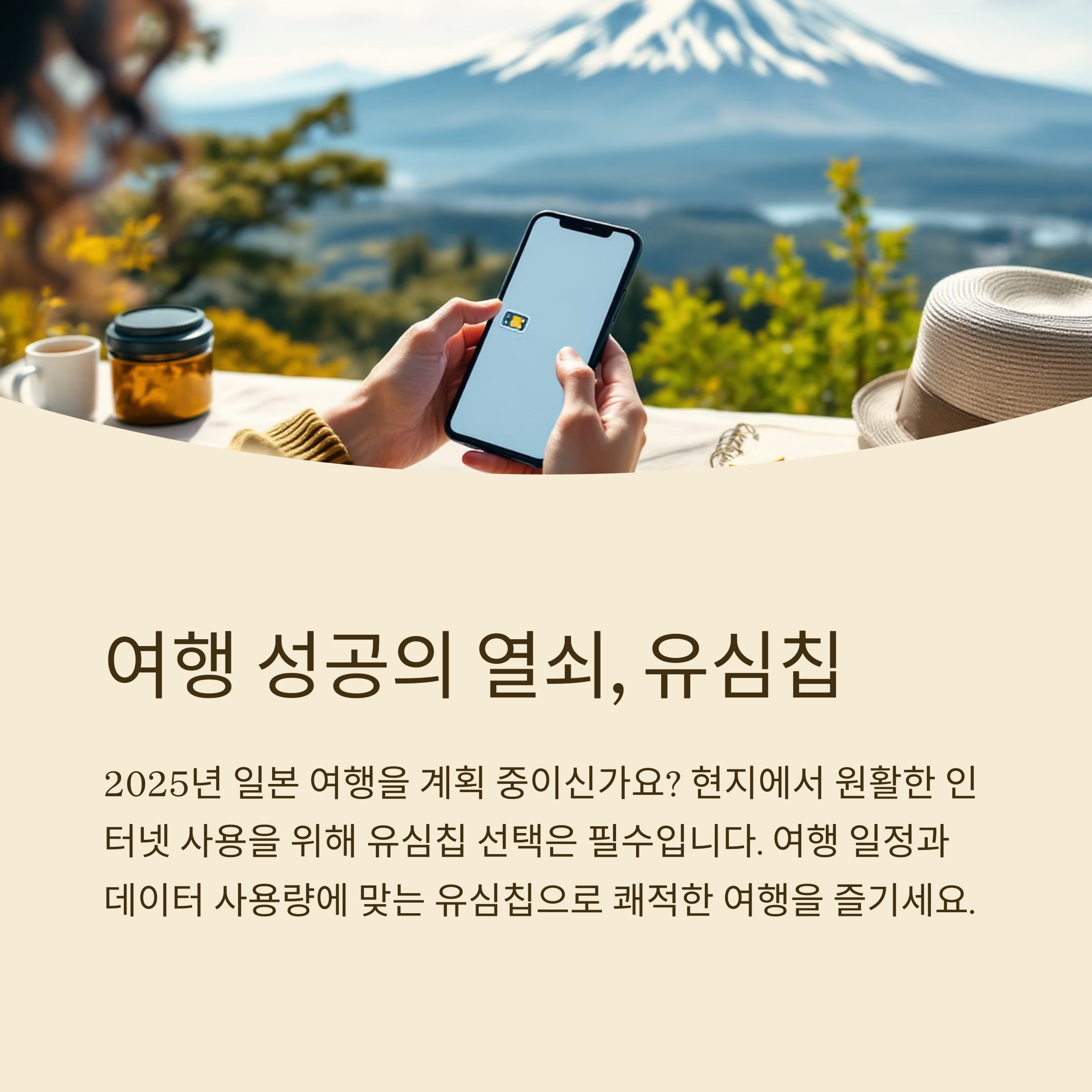 2025년 일본 여행을 계획 중이신가요? 현지에서 원활한 인터넷 사용을 위해 유심칩 선택은 필수입니다. 다양한 옵션 중에서 여행 일정과 데이터 사용량에 맞는 유심칩을 선택하여 쾌적한 여행을 즐기세요.