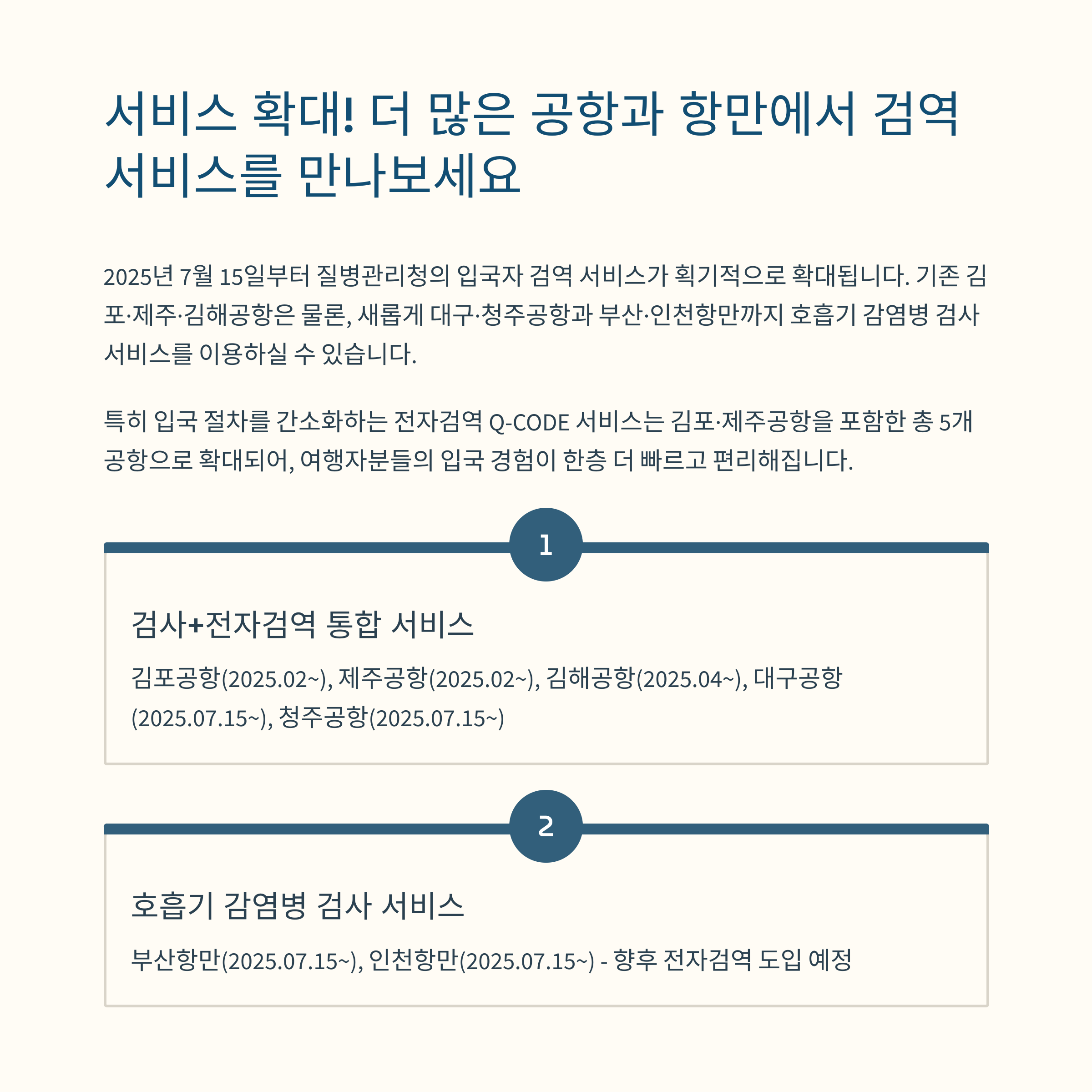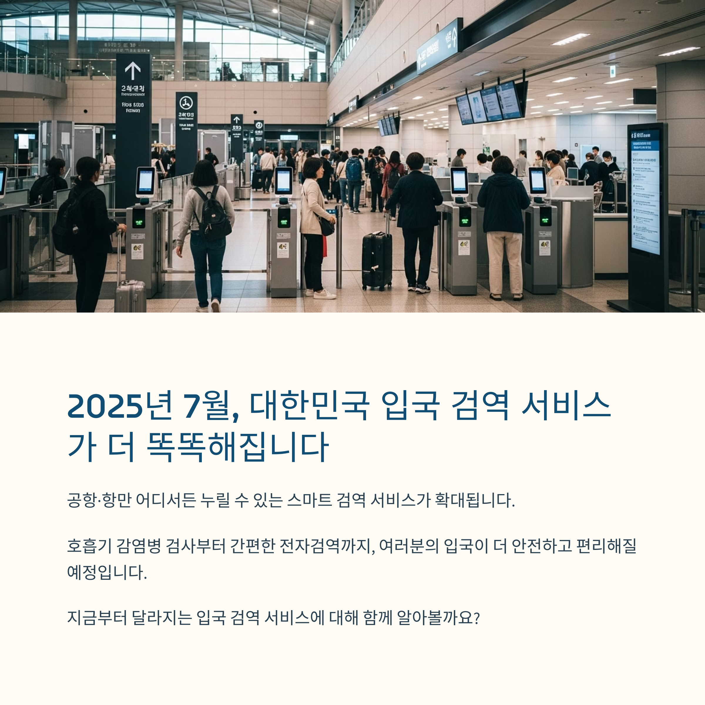 2025년 7월 15일부터 질병관리청이 운영하는 입국자 검역 서비스가 확대 시행됩니다.