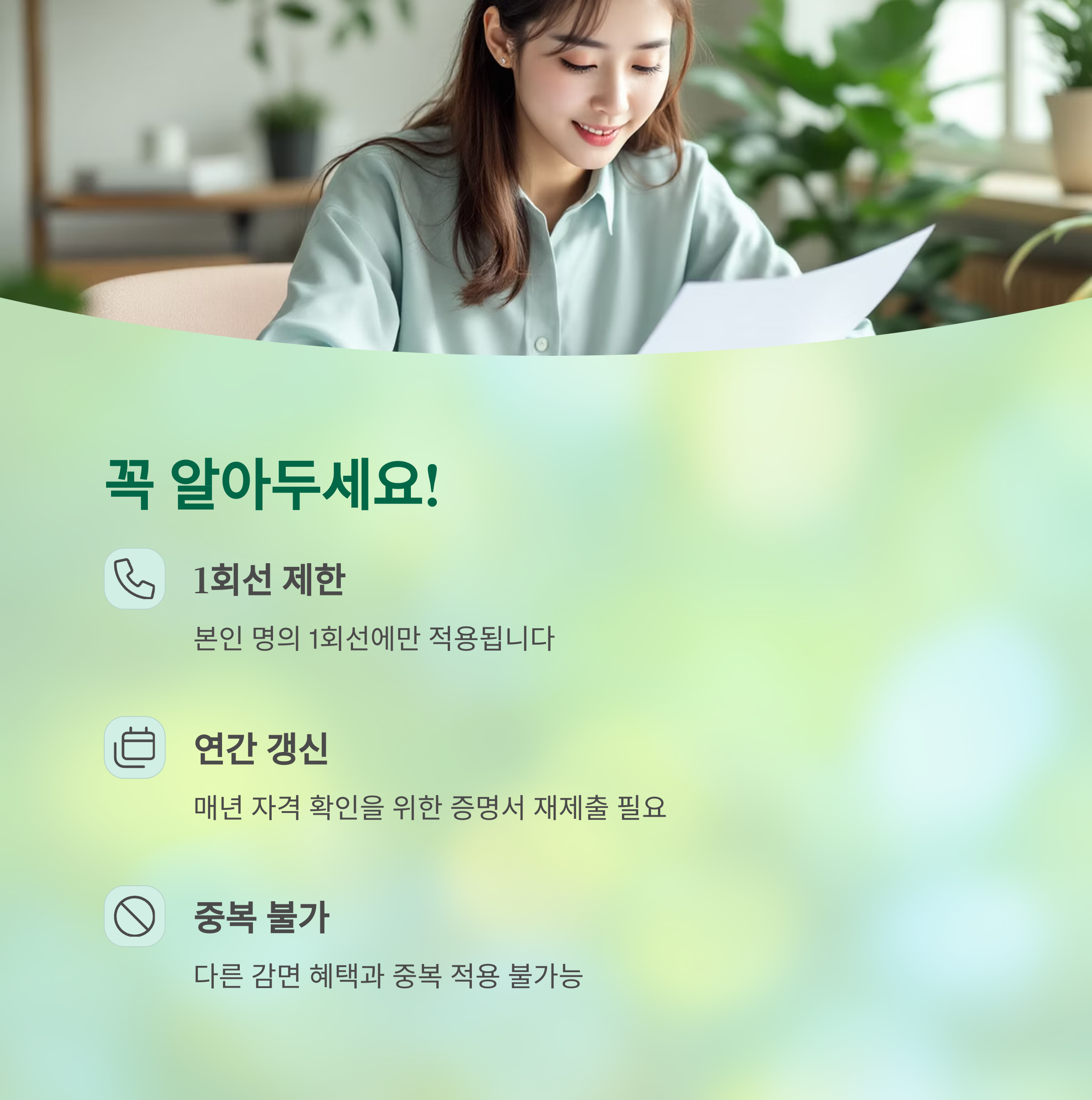 - 다른 감면 혜택과 중복 적용은 불가능하며, 하나의 혜택만 선택하여 적용됩니다.