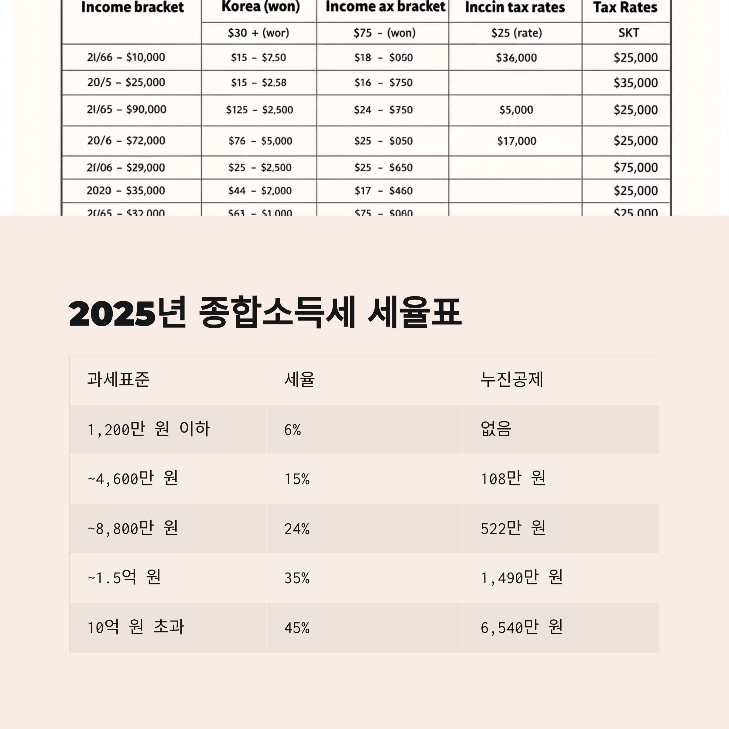 2025년 종합소득세 세율표 (과세표준 기준):