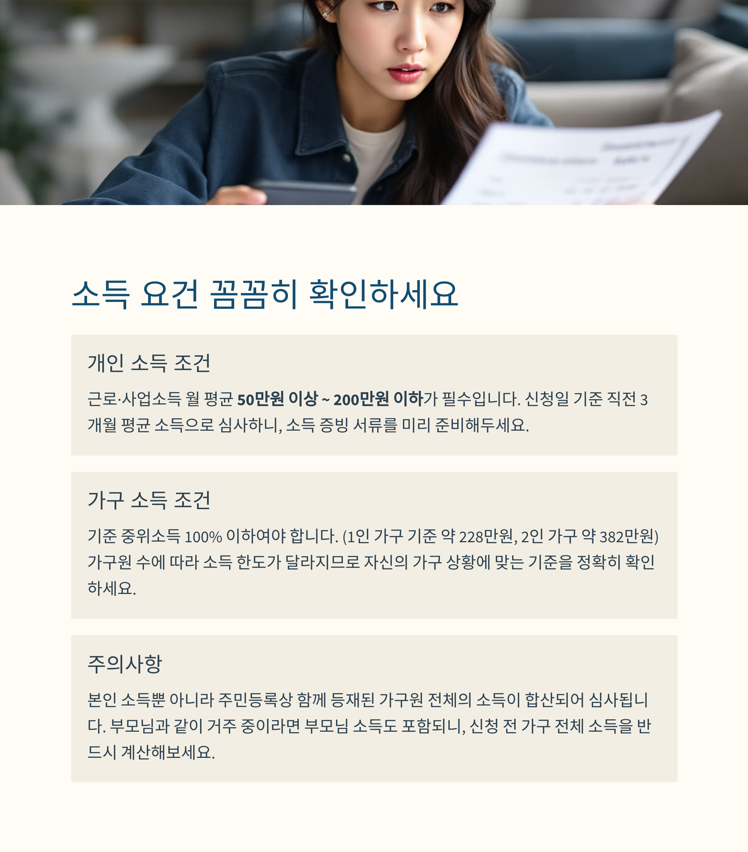 정확한 연령 계산, 본인 소득과 가구 소득 조건 확인이 먼저예요