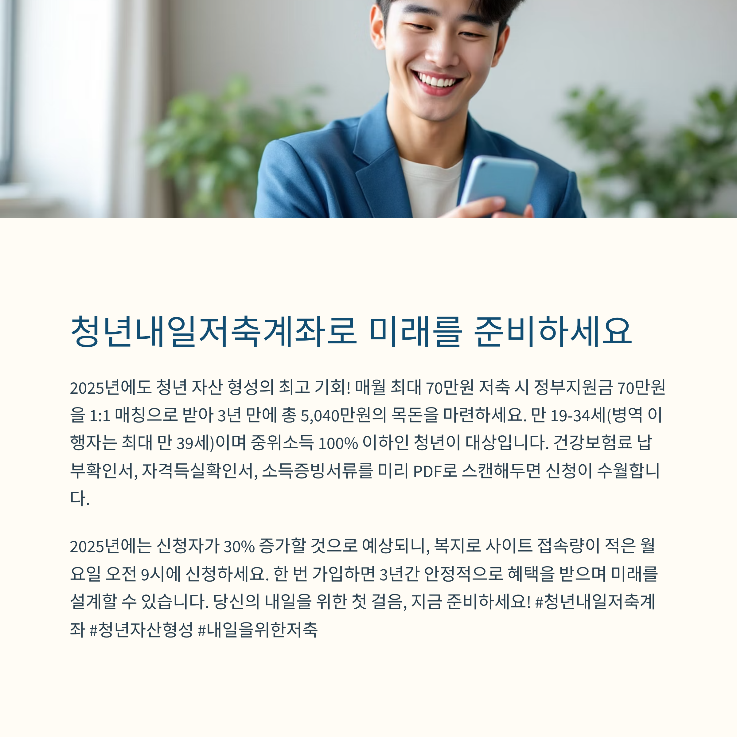 2025년 청년내일저축계좌, 지금 신청해도 될까? 소득·연령 조건 총정리