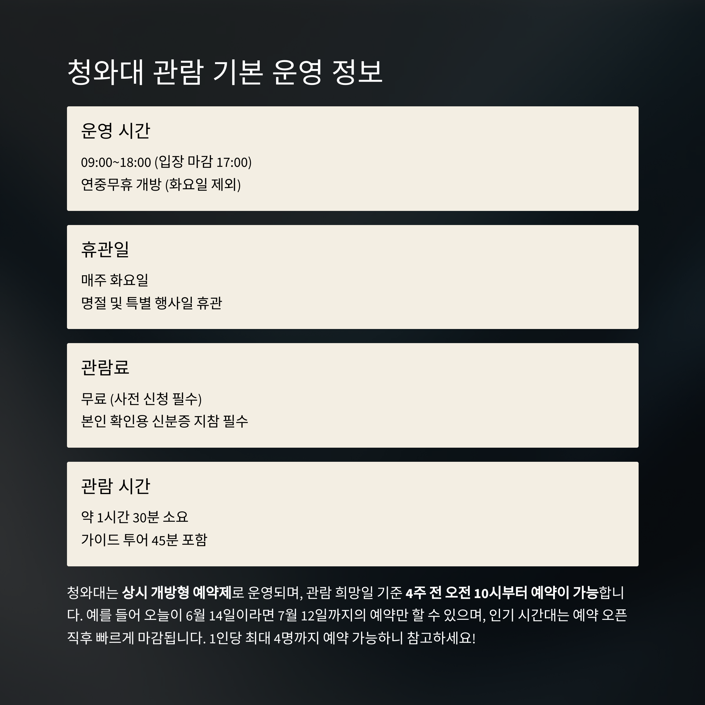 이번 글에서는 4주 이내 청와대 관람 예약 방법, 신청 사이트,
