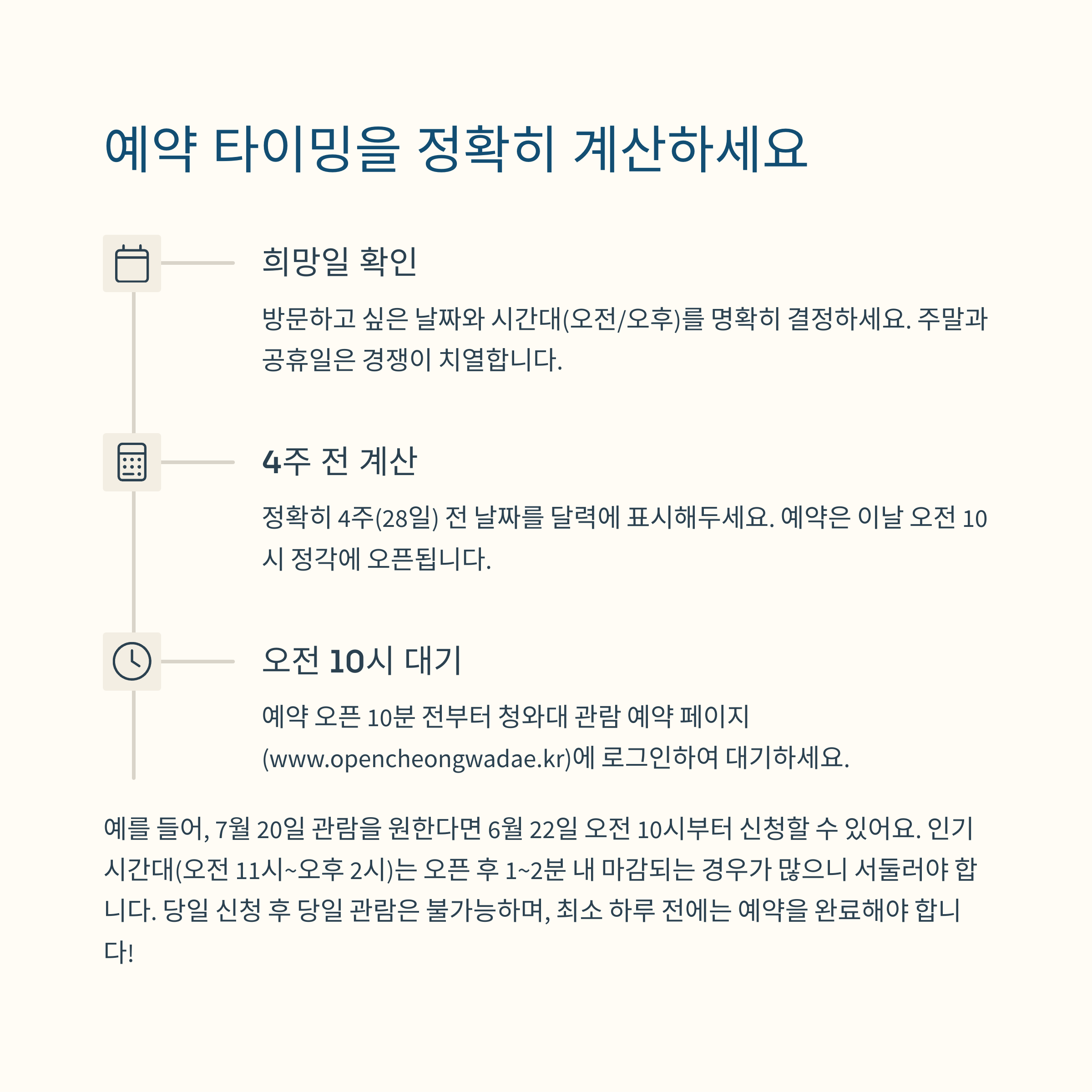 관람 희망일 기준으로 정확히 4주 전 오전 10시부터 신청 가능해요.