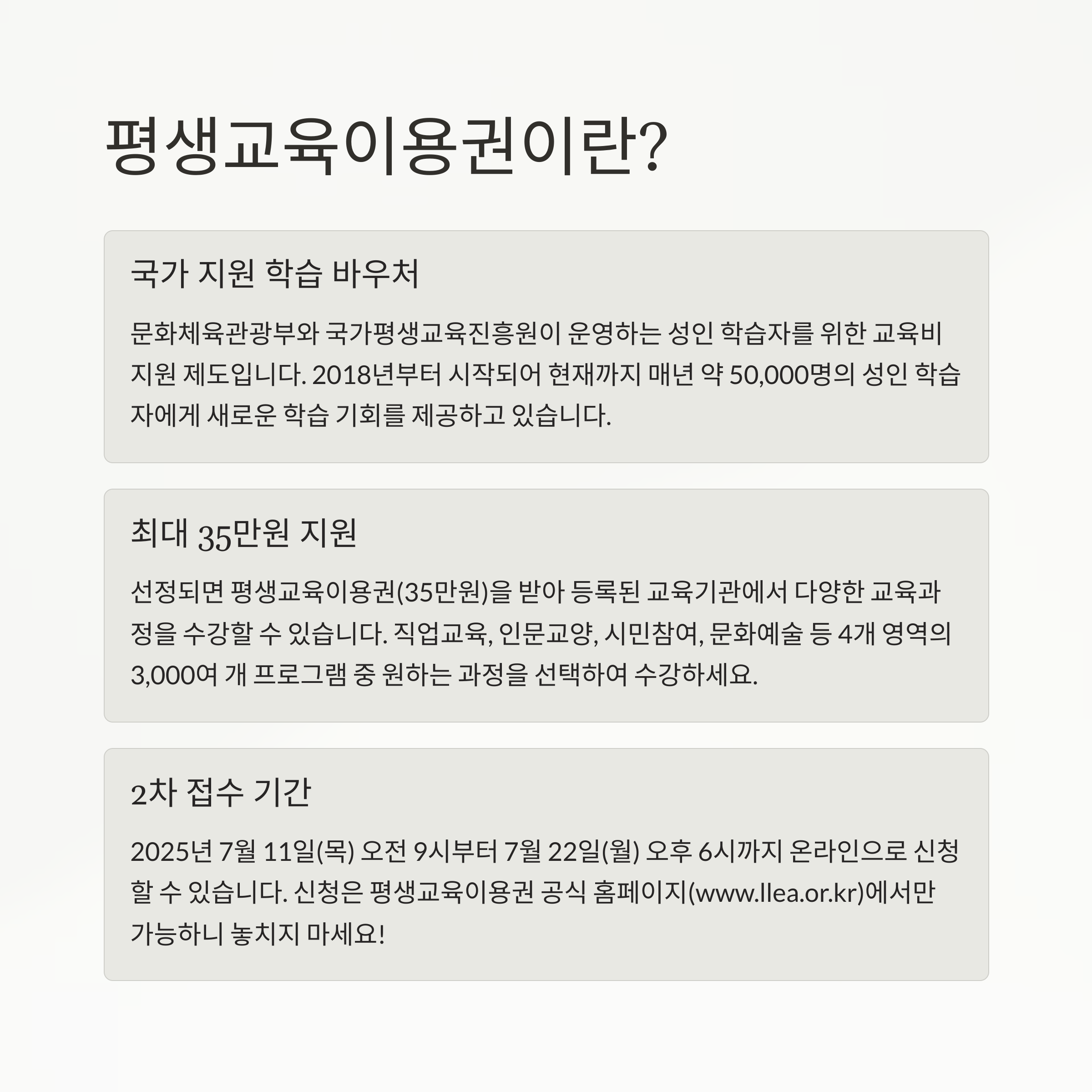 바로 ‘2025년 평생교육이용권’ 2차 접수 소식입니다.