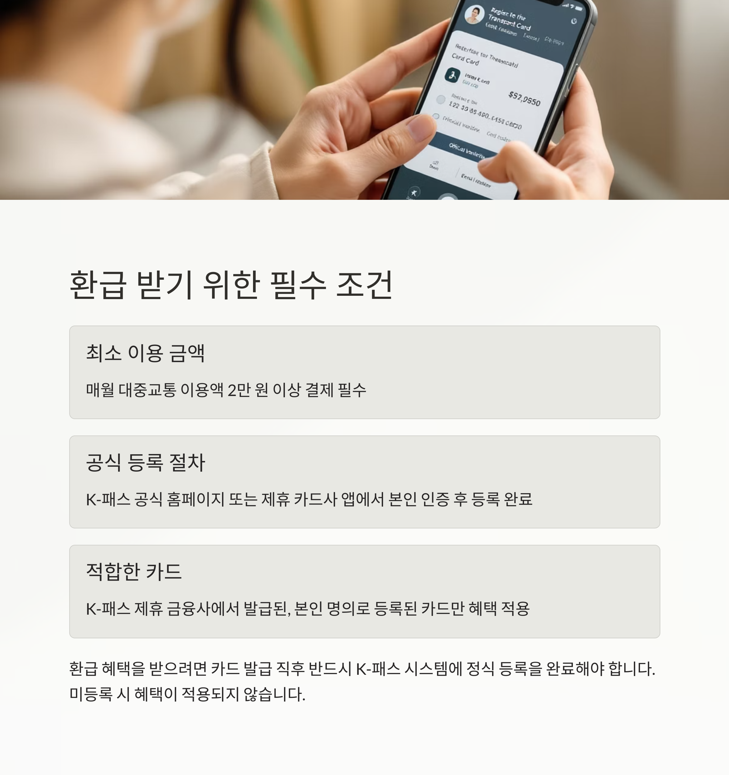 | 등록 방법 | K-패스 공식 홈페이지 또는 카드사 경로 등록 |