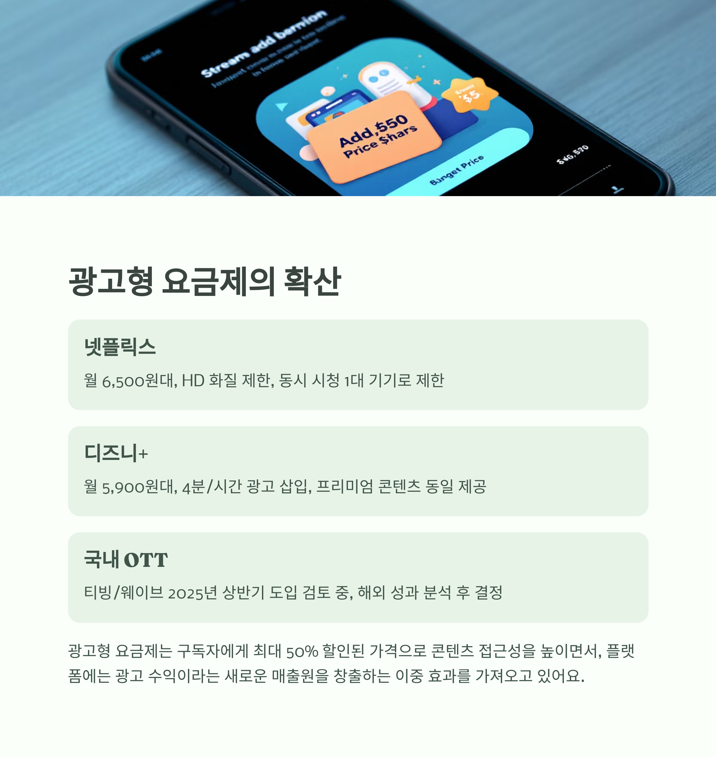 광고형 요금제는 콘텐츠 접근을 낮은 비용으로 열어주며,