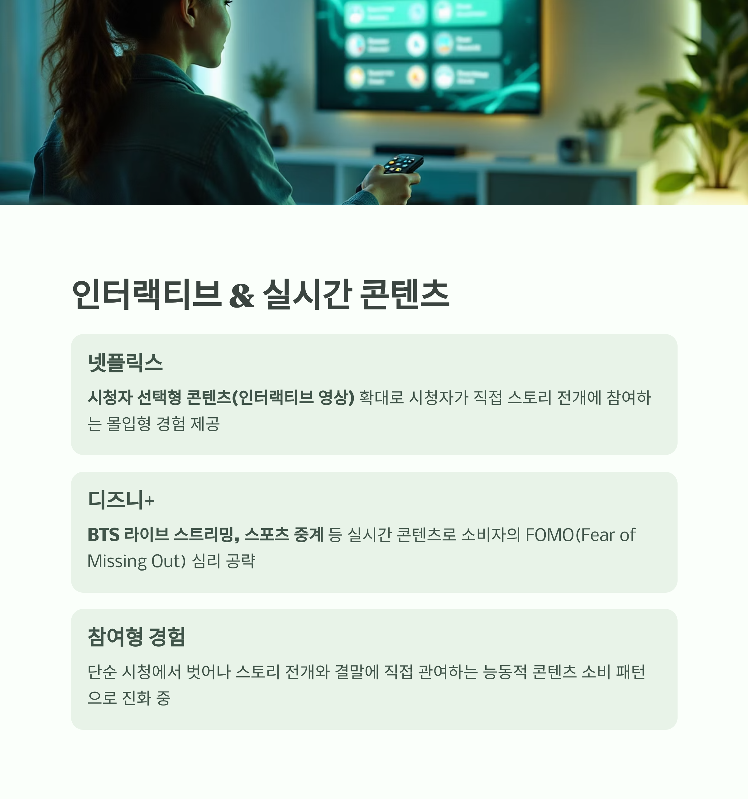 일방적인 콘텐츠 소비에서, 참여형 경험으로 OTT의 경계가 확장되고 있는 흐름이에요.