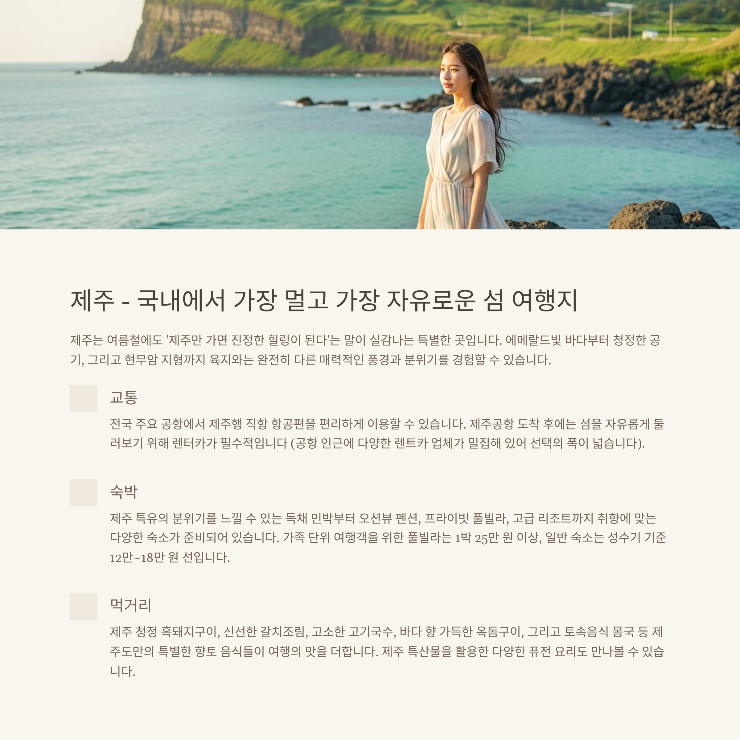 제주 – 국내에서 가장 멀고 가장 자유로운 섬 여행지