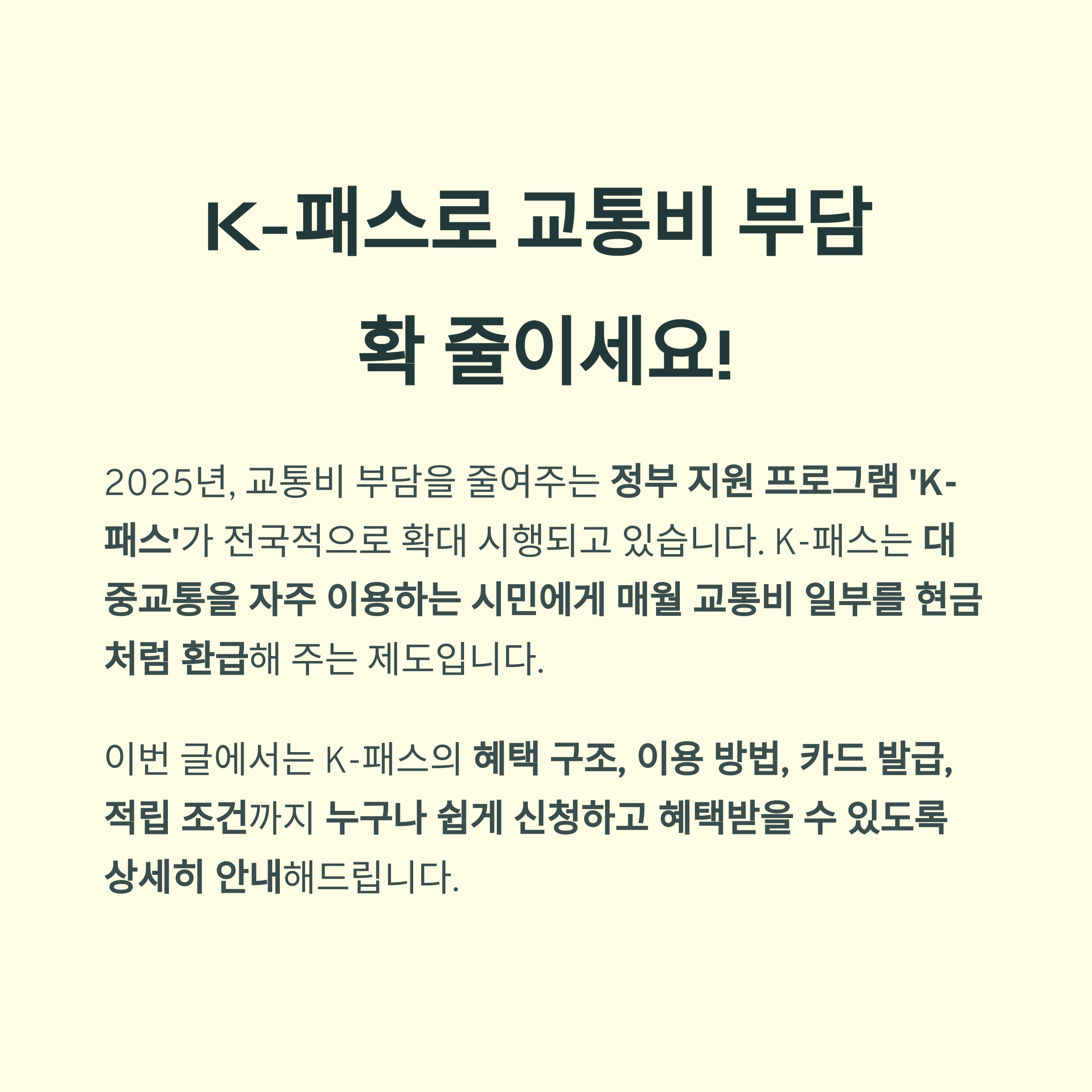 교통비가 부담되는 시대, 정부가 직접 지원하는 K-패스를 통해 매달 수천 원~수만 원을 절약할 수 있습니다.