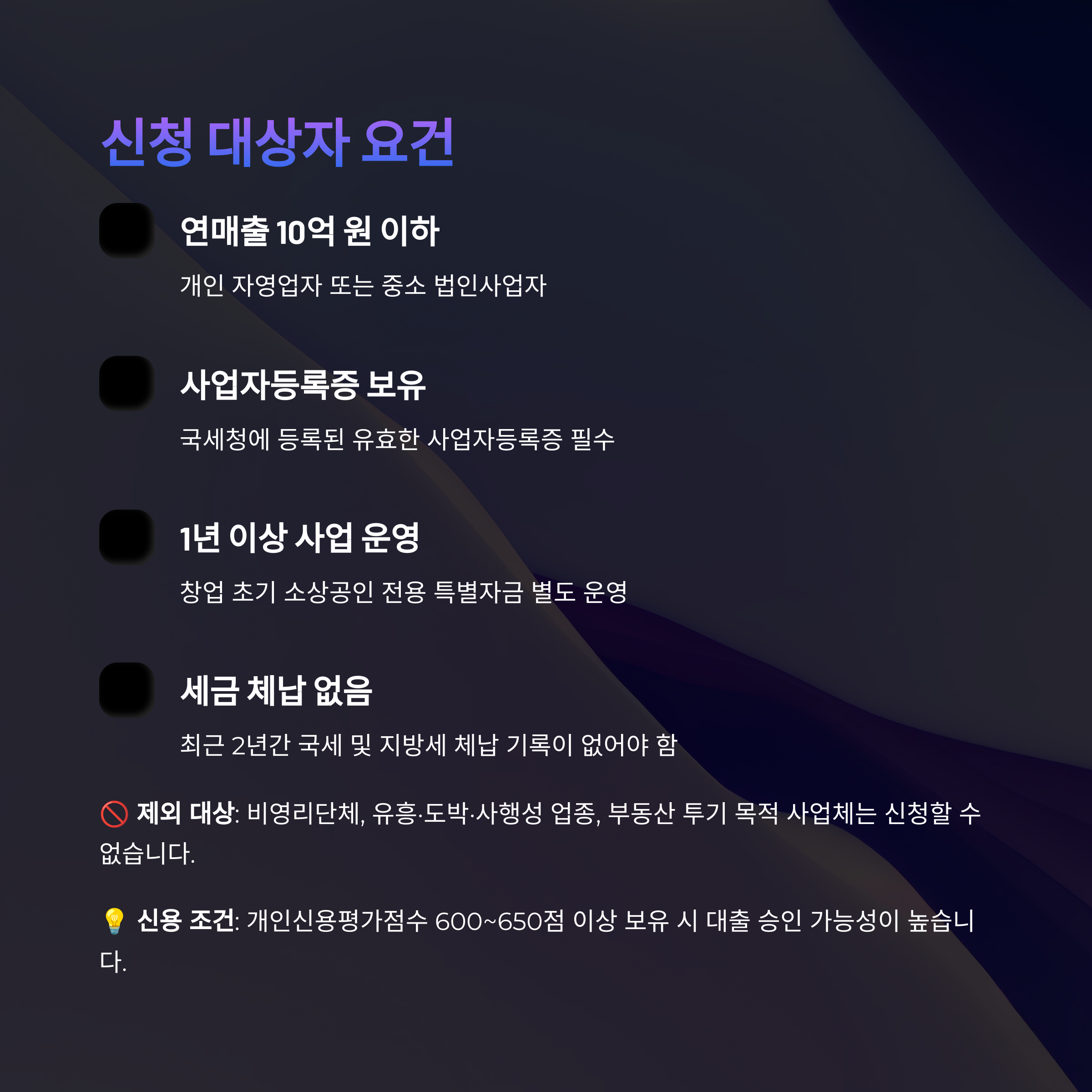 🚫 주의: 비영리단체, 유흥업종, 투기 목적 사업체 등은 제외됩니다.