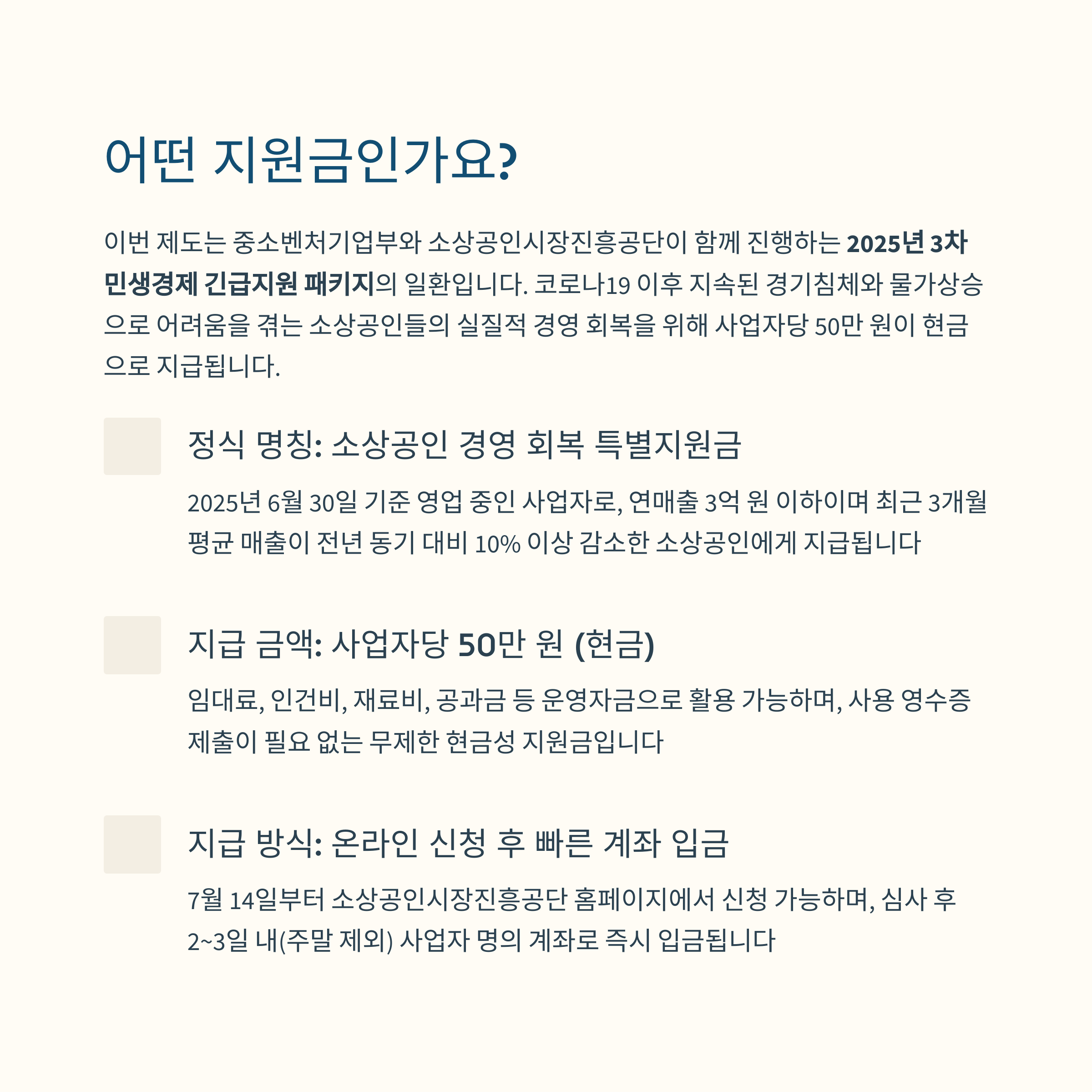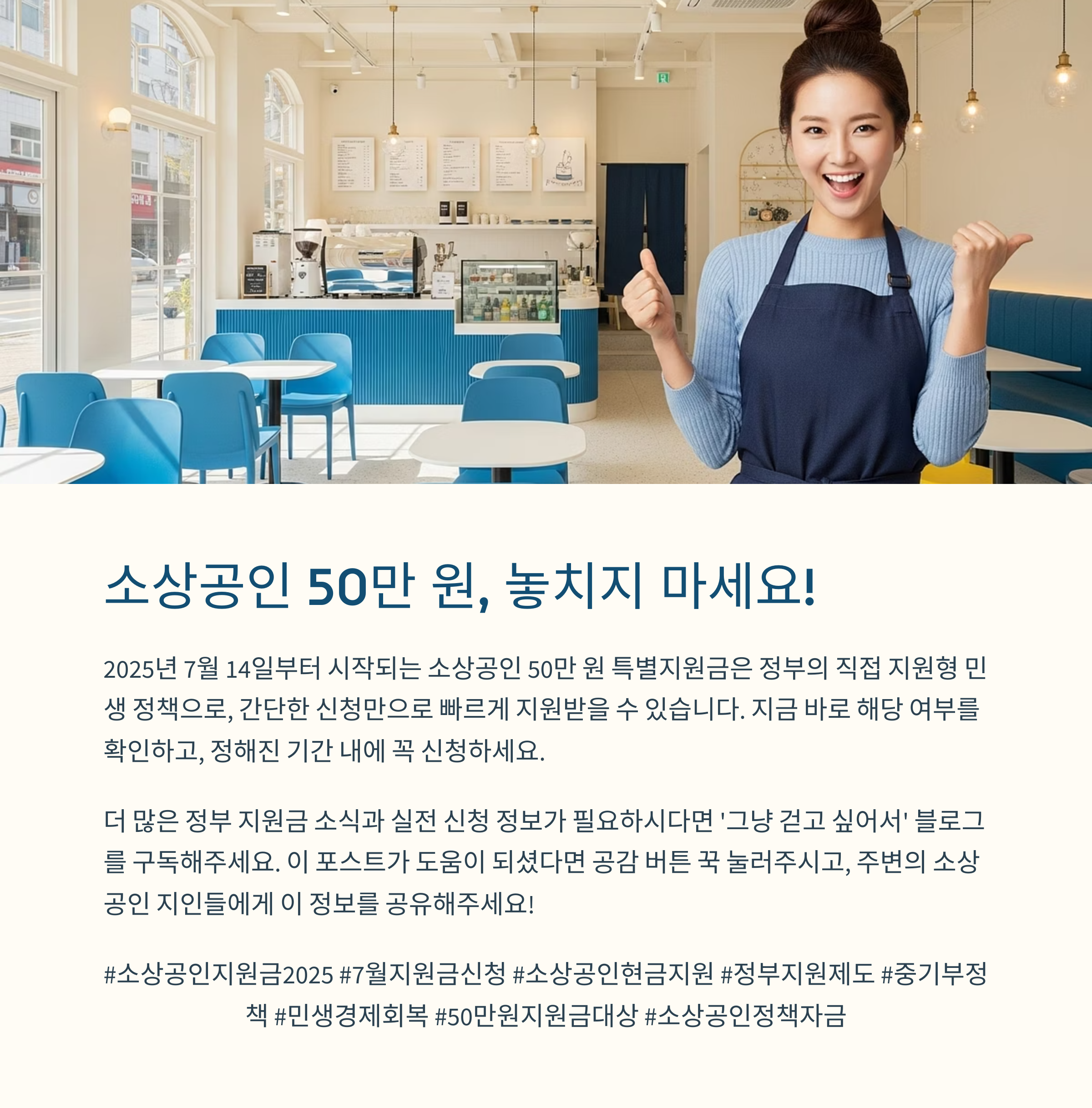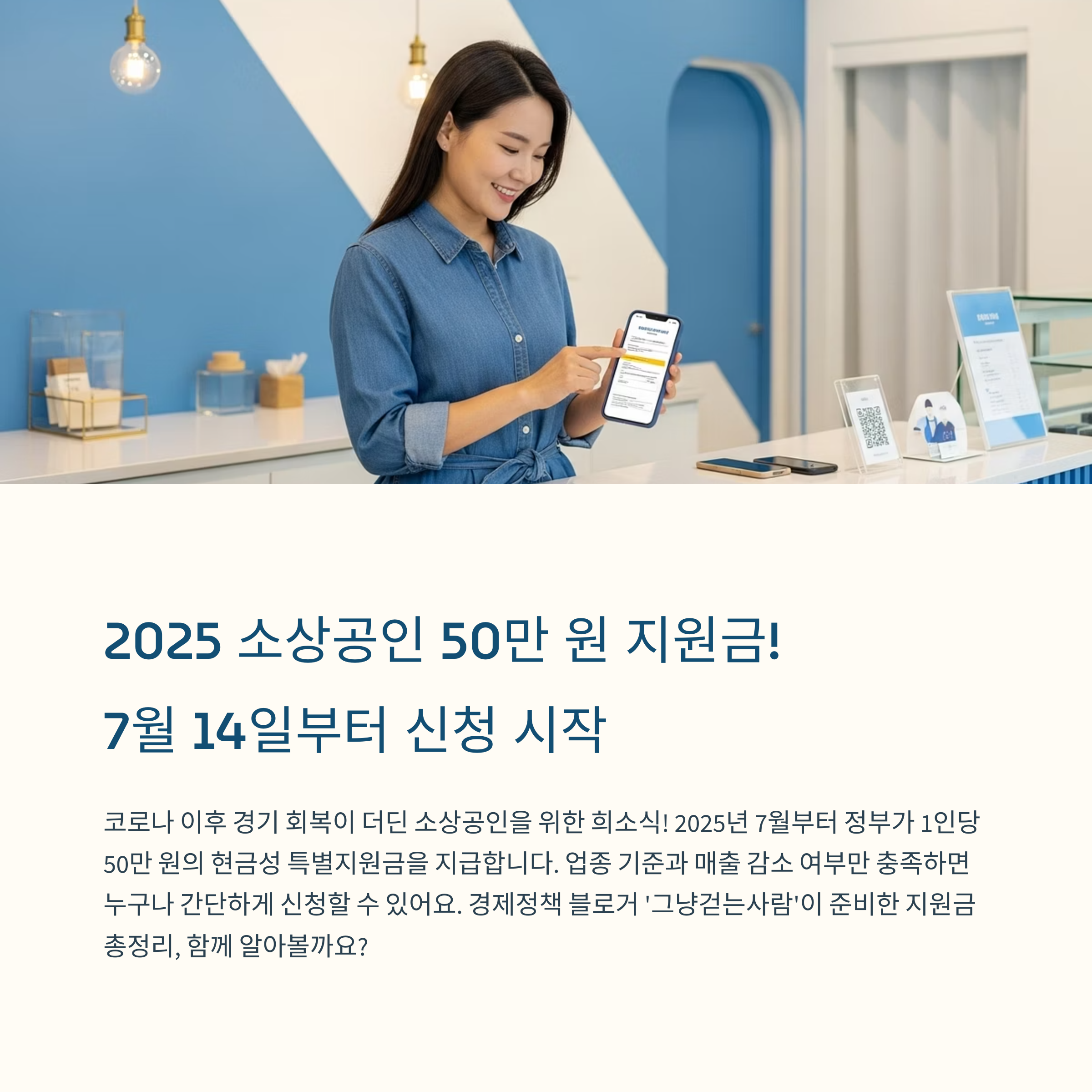2025 소상공인 50만 원 지원금 7월 14일 신청법